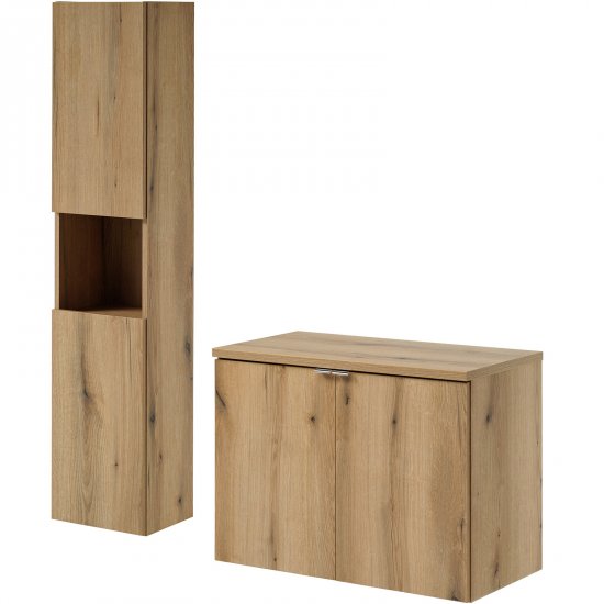 Zestaw mebli łazienkowych SET-NOA B OAK 80CM D HC to idealne rozwiązanie dla osób poszukujących eleganckich i funkcjonalnych mebli do łazienki. Zestaw składa się z trzech elementów, które tworzą spójną całość.