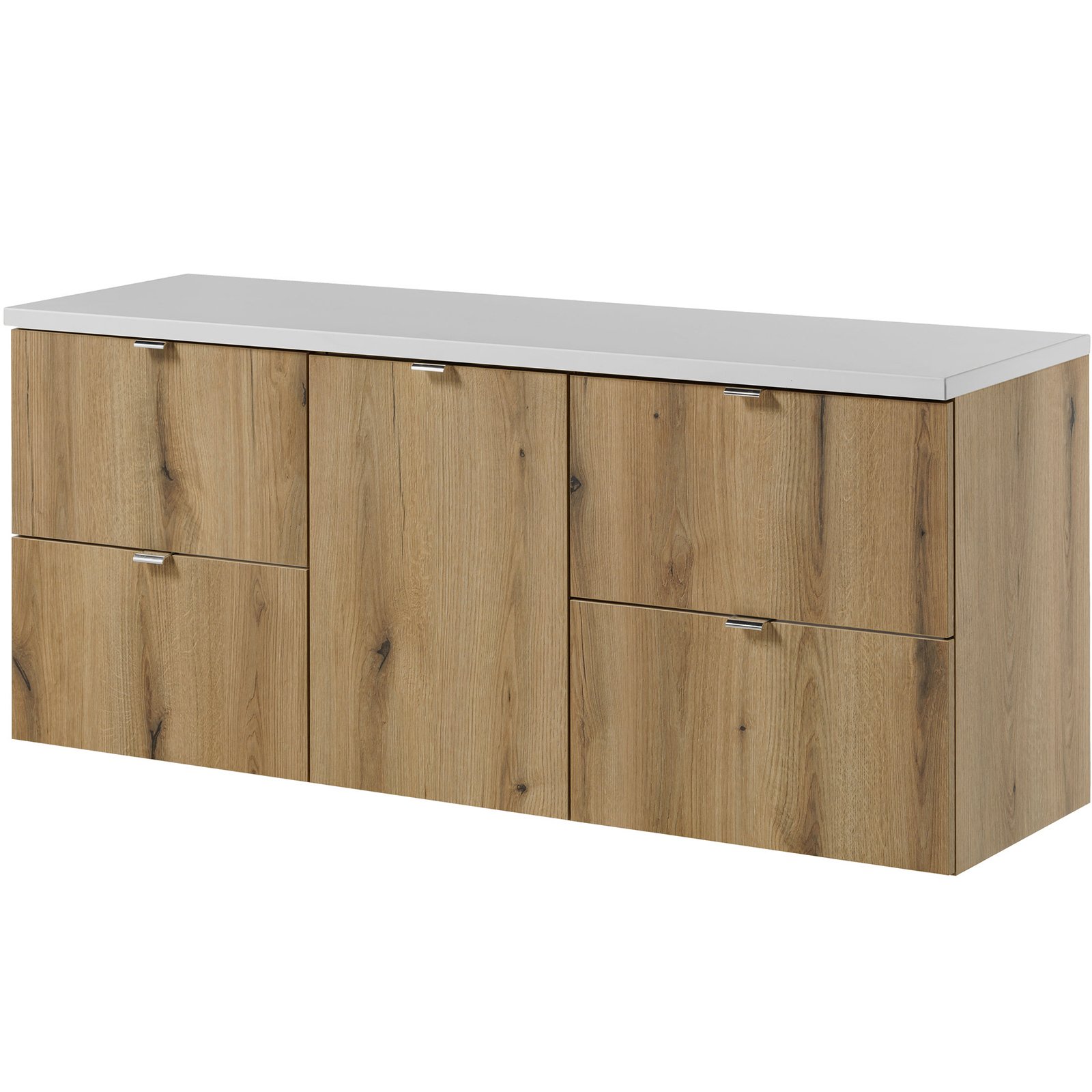 Zestaw mebli NOVA OAK 2 szafki 50 cm, szafka z koszem, blat WHITE 140 cm