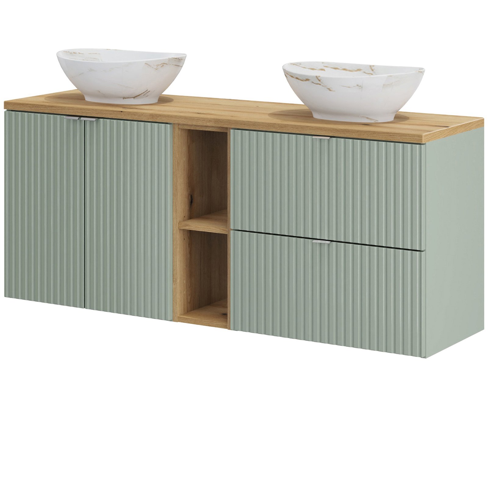 Zestaw mebli LINE REED GREEN 3 szafki, blat OAK 140 cm, 2 umywalki PATI