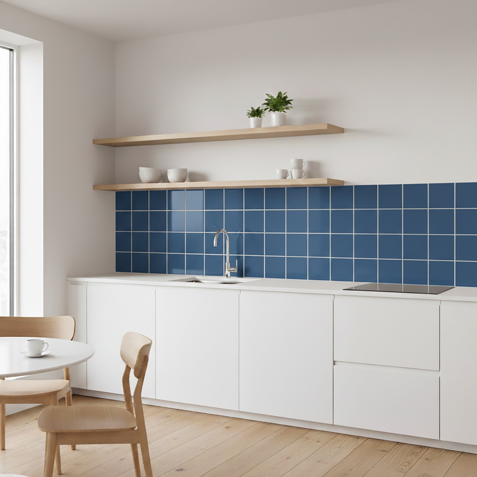 Błyszcząca, niebieska płytka ścienna VA MONOCOLOR ZAFIRO LISO 20x20 jest niczym spokojna, gładka tafla morza - elegancka, głęboka i kojąca. Jej lustrzana powierzchnia łapie światło, odbija je miękko i nadaje wnętrzu wrażenie przestronności oraz lekkości.