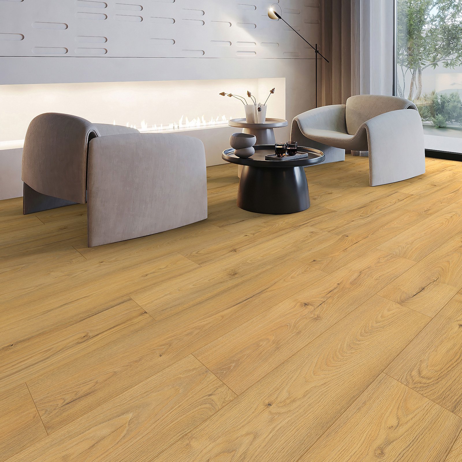 Podłogi laminowane KRONOSPAN są odporne na uderzenia, wstrząsy, zadrapania, ścieranie i nacisk, dzięki specjalnemu wytrzymałemu wykończeniu powierzchni. Podłoga nie straci koloru i nie wyblaknie pod wpływem bezpośredniego wystawienia na działanie słońca - podłogi są odporne na działanie promieni UV. Podłogi cechuje szybki i łatwy montaż.