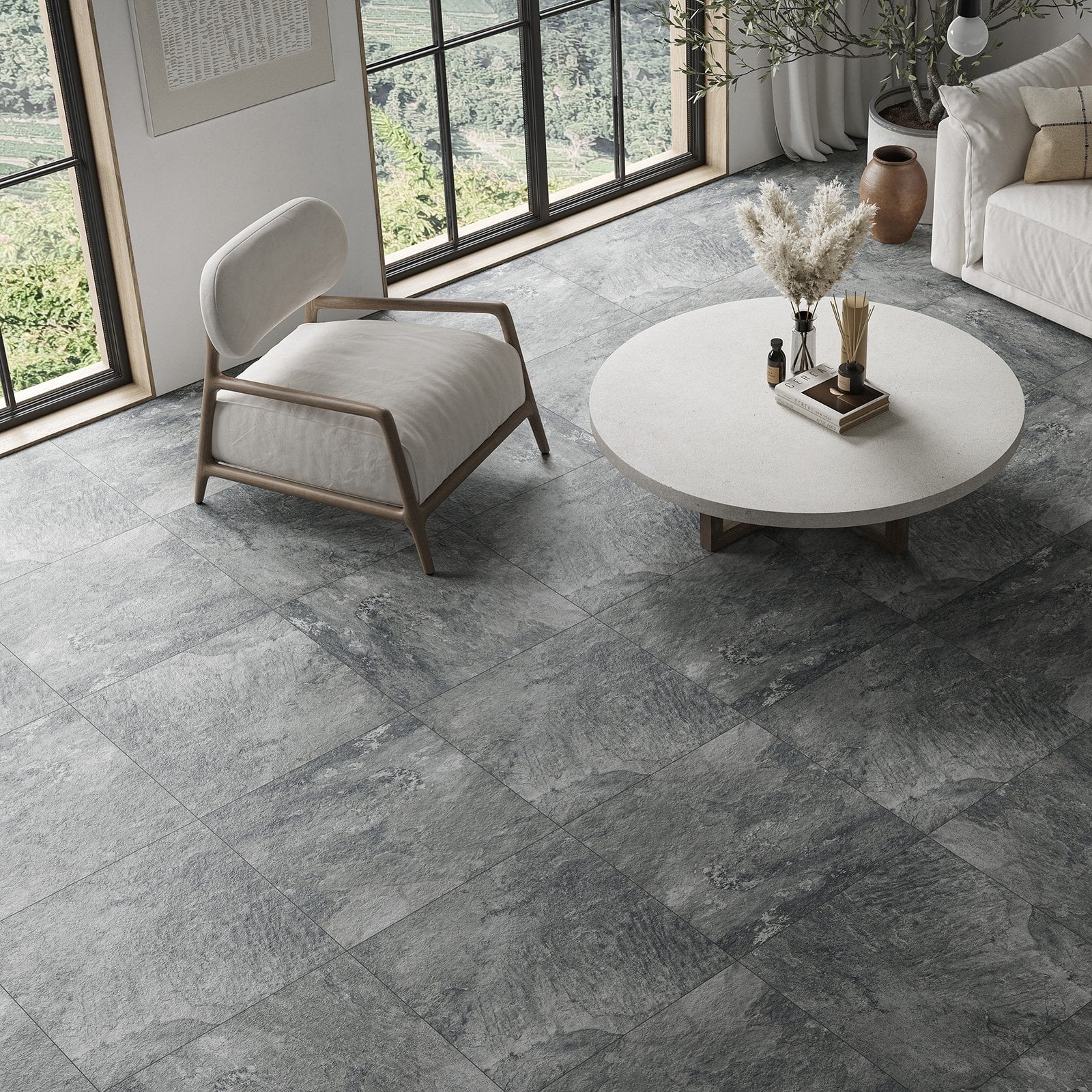 Gres szkliwiony SHADED SLATE anthracite structure mat 59,8x59,8. Gatunek drugi. Do stosowania na podłogach i ścianach, wewnątrz i na zewnątrz budynków, z wyłączeniem miejsc o bardzo dużym natężeniu ruchu.
