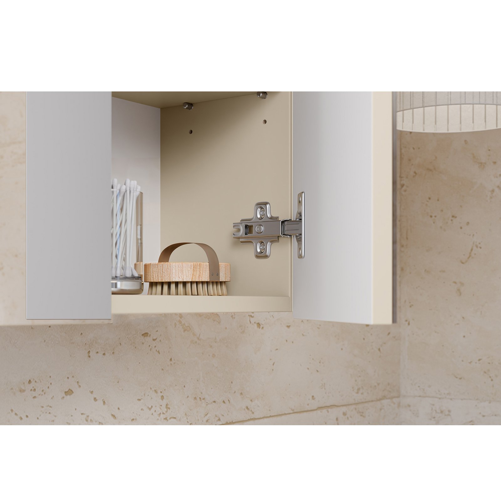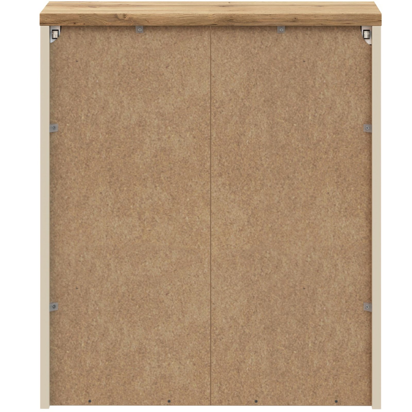 Dwudrzwiowa szafka z lustrem z kolekcji Bali Cashmere otula wnętrze ciepłem i spokojem, tworząc przestrzeń, w której chce się zatrzymać na dłużej. Jasny dekor Kaszmirowy Beż w duecie z naturalnym dekorem Dąb Wotan tworzy spójną, elegancką całość. Tafla lustra osadzona na płycie laminowanej z zintegrowanymi podchwytami podkreśla nowoczesny, a zarazem ponadczasowy charakter mebli.
