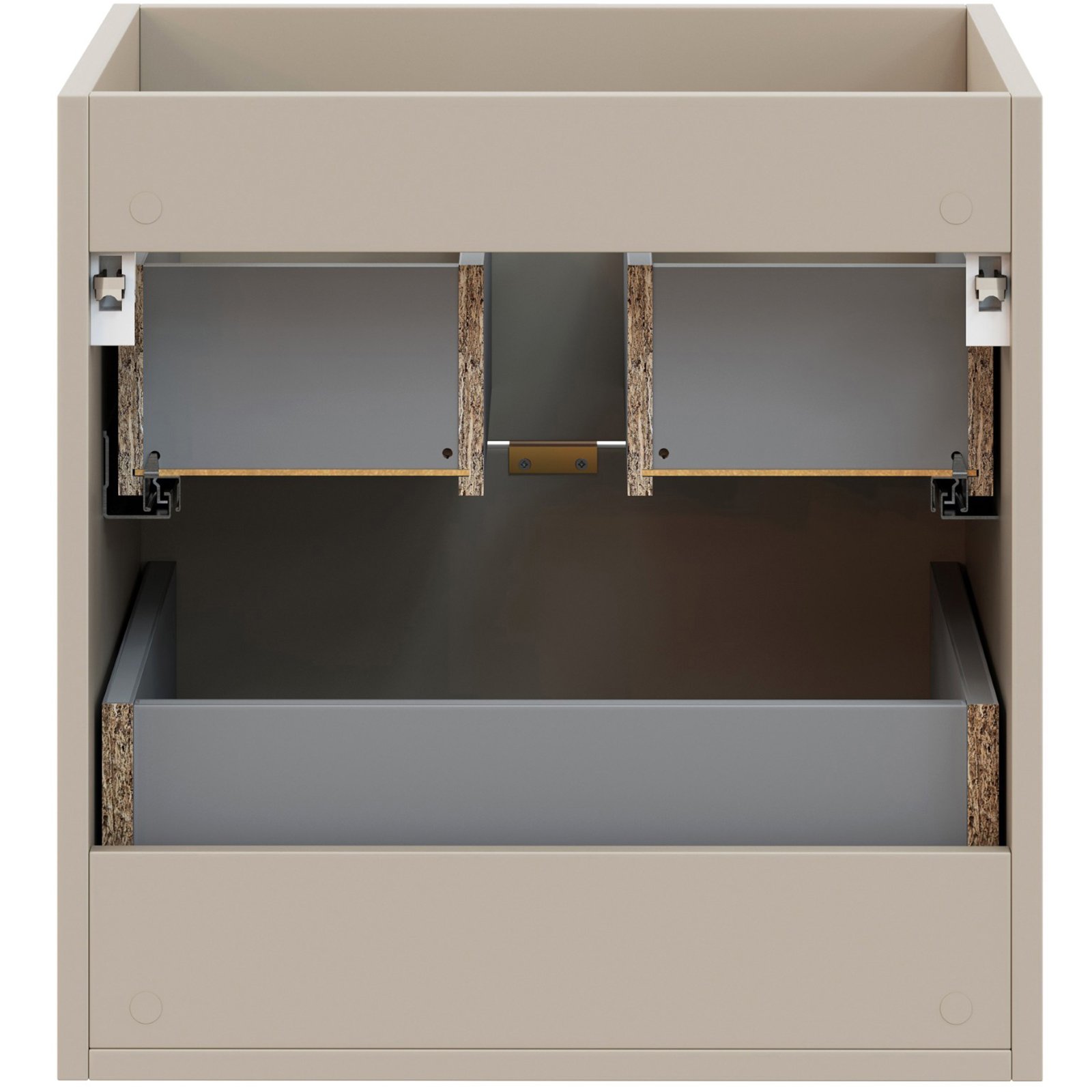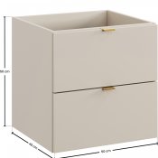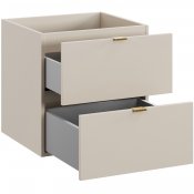 Szafka podumywalkowa z kolekcji Dalia Cashmere wprowadza do wnętrza łagodną, ciepłą atmosferę. Dwie pojemne szuflady oferują dużo miejsca do przechowywania akcesoriów łazienkowych, utrzymując porządek. Każdy element tego mebla odznacza się starannym wykończeniem i dbałością o detale, co przekłada się na estetyczny wygląd i długotrwałą satysfakcją z użytkowania.
