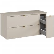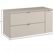 Kolekcja mebli Dalia Cashmere to kwintesencja minimalistycznego stylu. Gładkie fronty, pozbawione zbędnych ozdobników, zachwycają prostotą, a wykończenie w odcieniu kaszmiru wprowadza do wnętrza łagodną, ciepłą atmosferę. Dzięki pełnej kompatybilności z kolekcją Dąb Cremona, można swobodnie kreować przestrzeń, dodając spójnego i wyrazistego stylu.