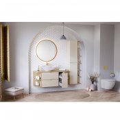 Kolekcja mebli Dalia Cashmere to kwintesencja minimalistycznego stylu. Gładkie fronty, wykonane z płyty laminowanej, pozbawione są zbędnych ozdobników, zachwycając swoją prostotą, a wykończenie w odcieniu kaszmiru wprowadza do wnętrza łagodny klimat. W komplecie trzy kolory uchwytów: złoty połysk, chrom połysk oraz czarny mat.