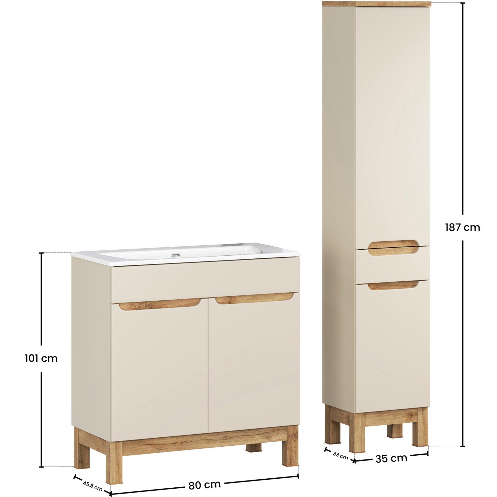 Zestaw mebli BALI CASHMERE szafka z umywalką meblową SKY 80 cm, słupek 35 cm
