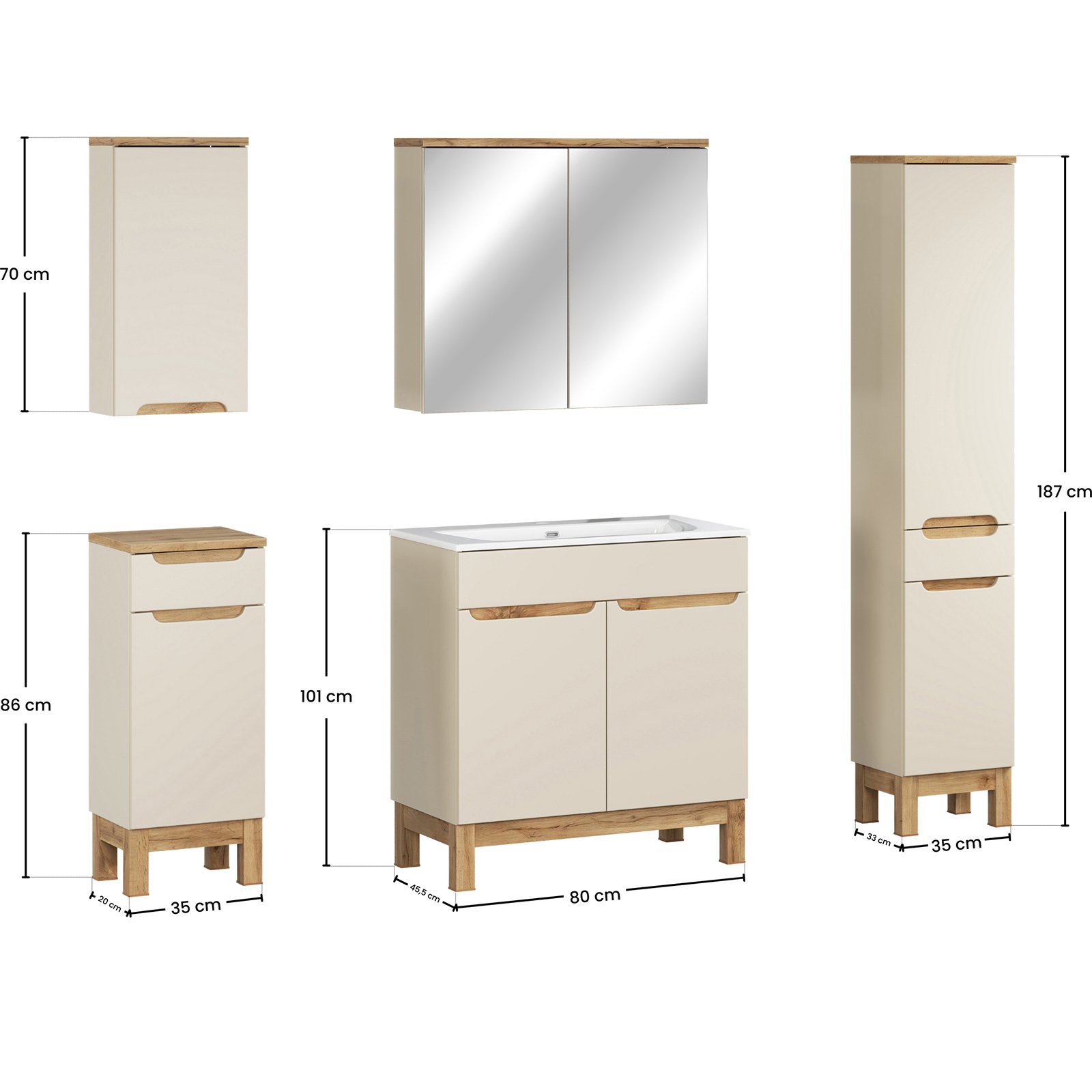 Zestaw mebli BALI CASHMERE 4 szafki, umywalka meblowa LAVA 60 cm, słupek 35 cm