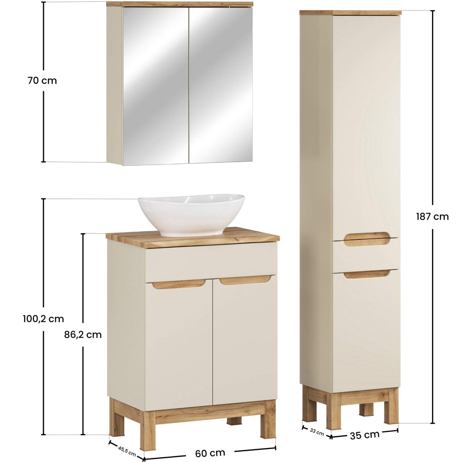 Zestaw mebli BALI CASHMERE 2 szafki, blat WOTAN 60 cm, słupek 35 cm, umywalka LOLA