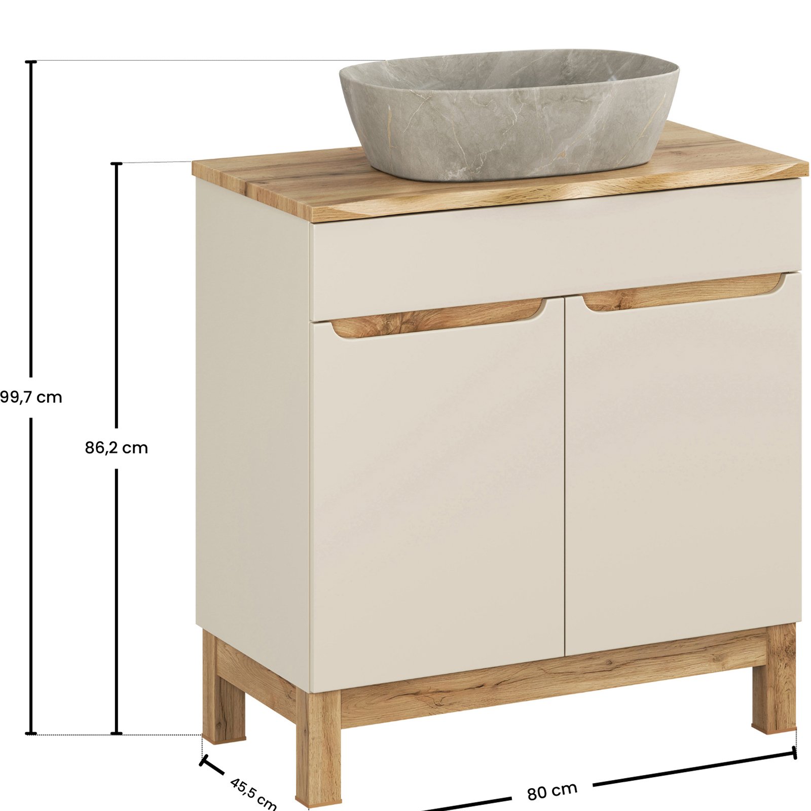 Zestaw mebli BALI CASHMERE szafka z blatem NATURE WOTAN 80 cm, umywalka nablatowa ANNA