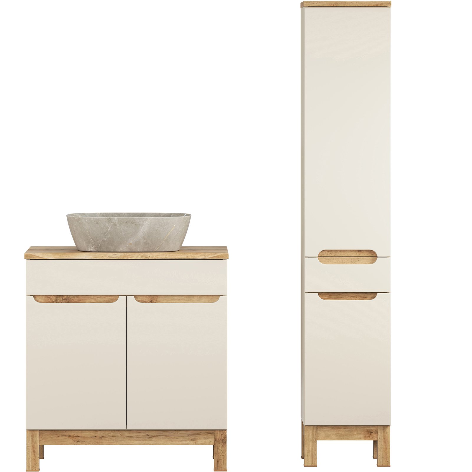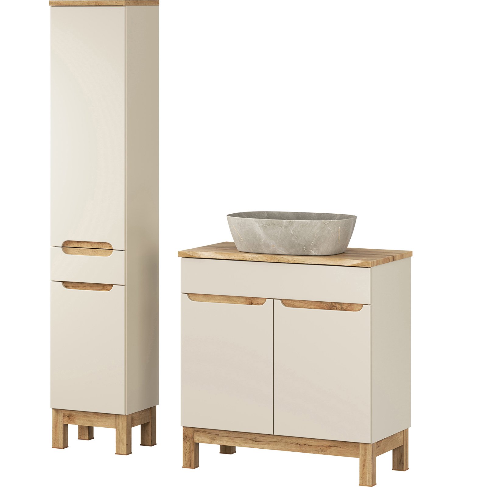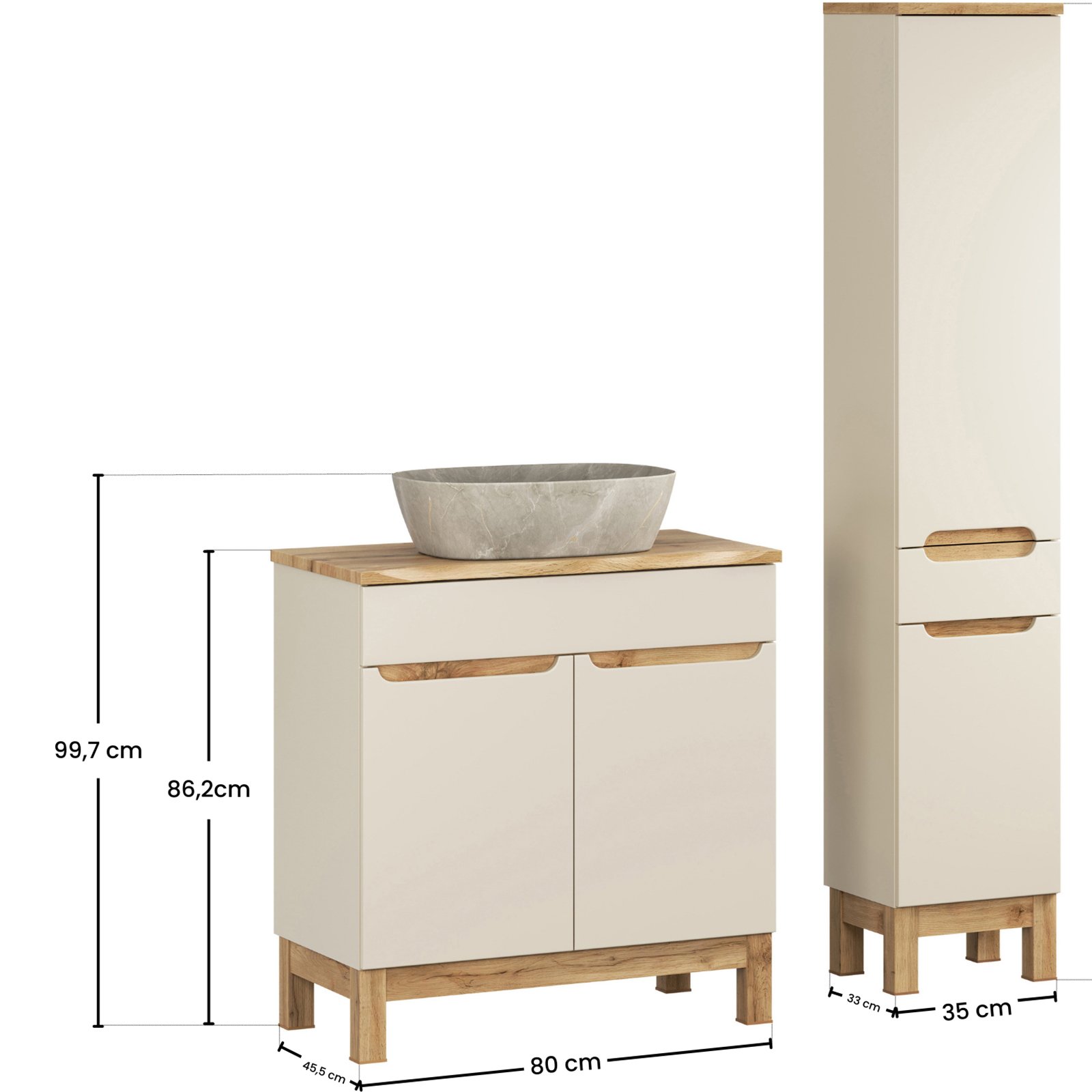 Zestaw mebli BALI CASHMERE szafka z blatem NATURE WOTAN 80 cm, umywalka ANNA, słupek 35 cm