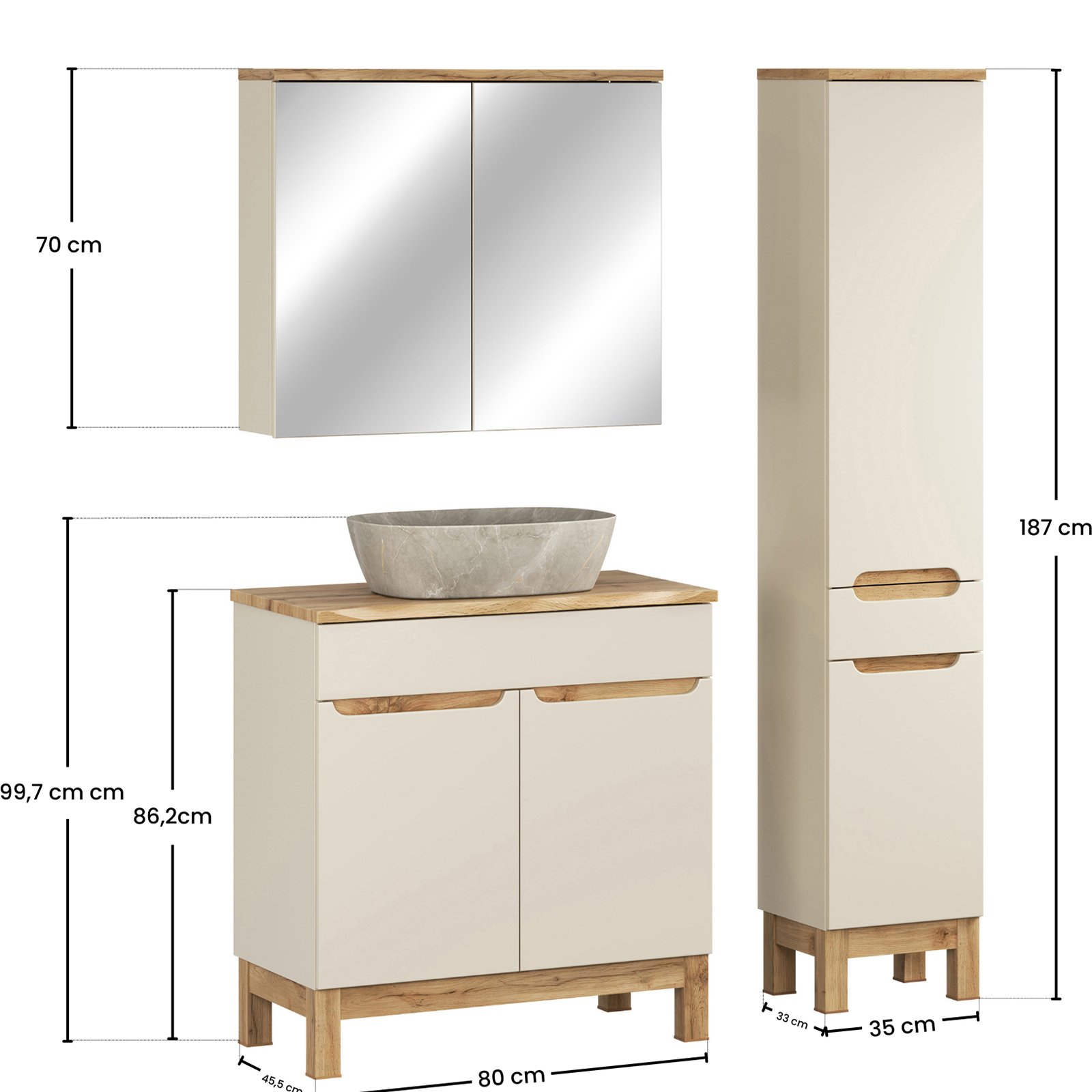 Zestaw mebli BALI CASHMERE 2 szafki 80 cm, blat WOTAN 80 cm, słupek 35 cm, umywalka ANNA
