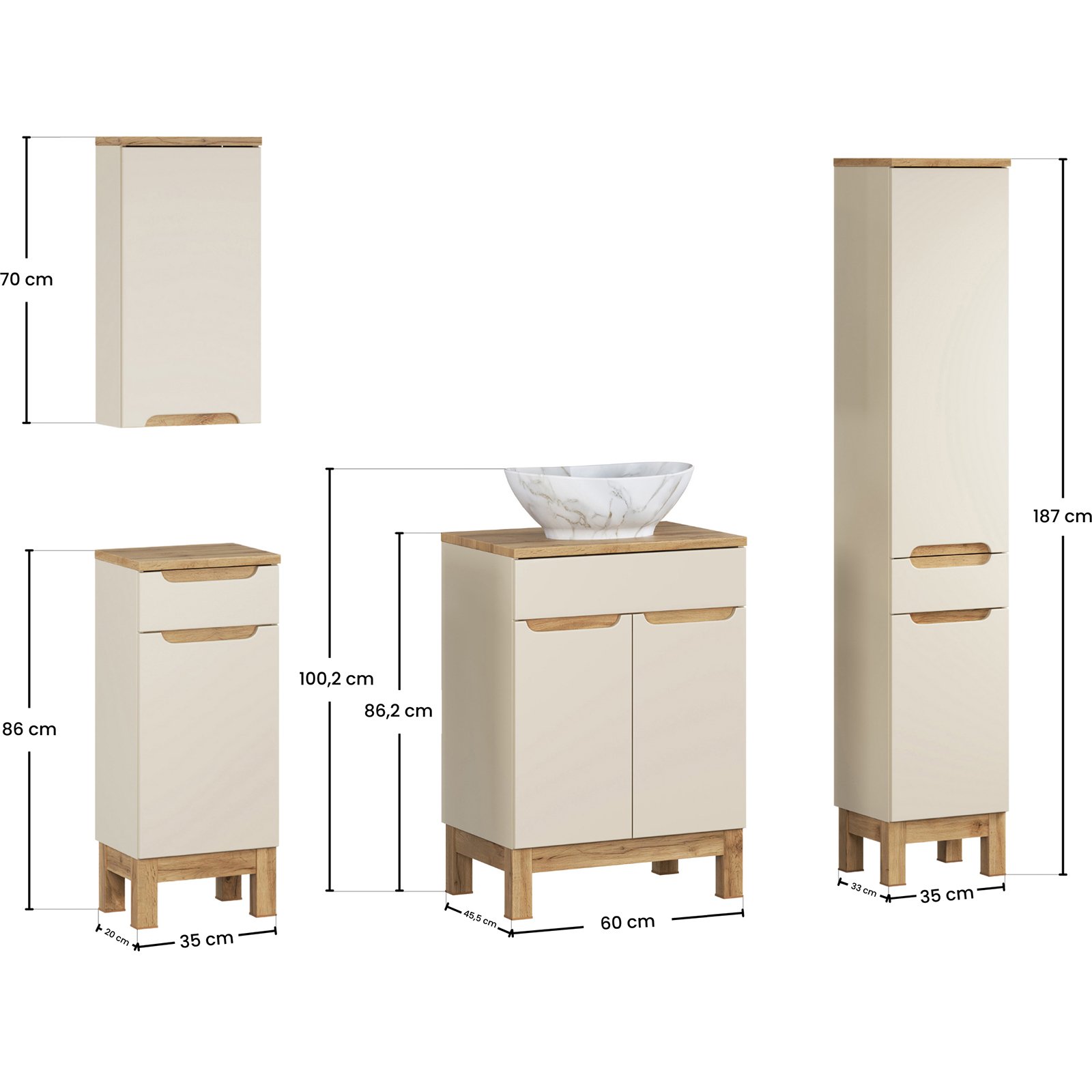 Zestaw mebli BALI CASHMERE 3 szafki, blat WOTAN 60 cm, słupek 35 cm, umywalka PATI