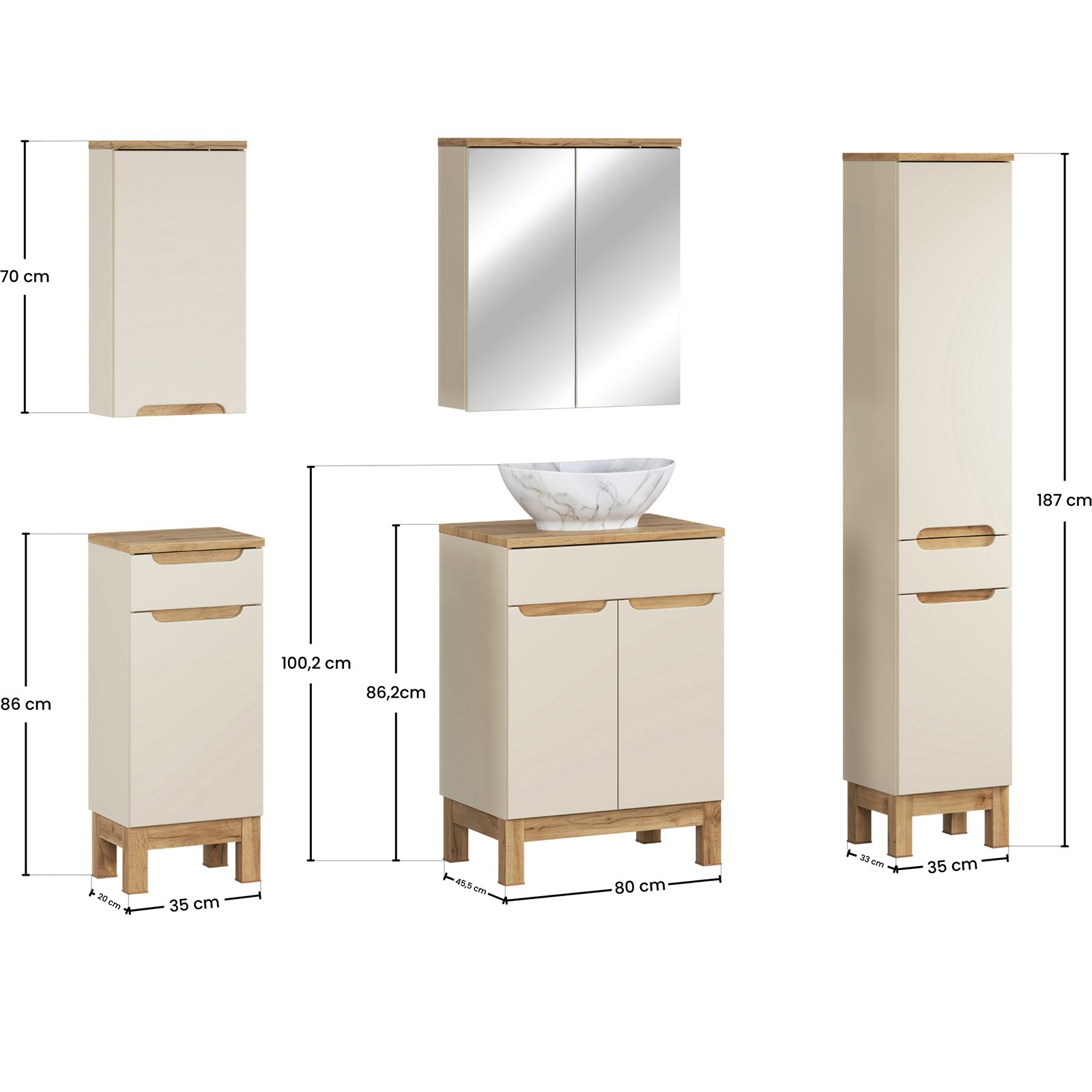 Zestaw mebli BALI CASHMERE 4 szafki, blat WOTAN 60 cm, słupek 35 cm, umywalka PATI