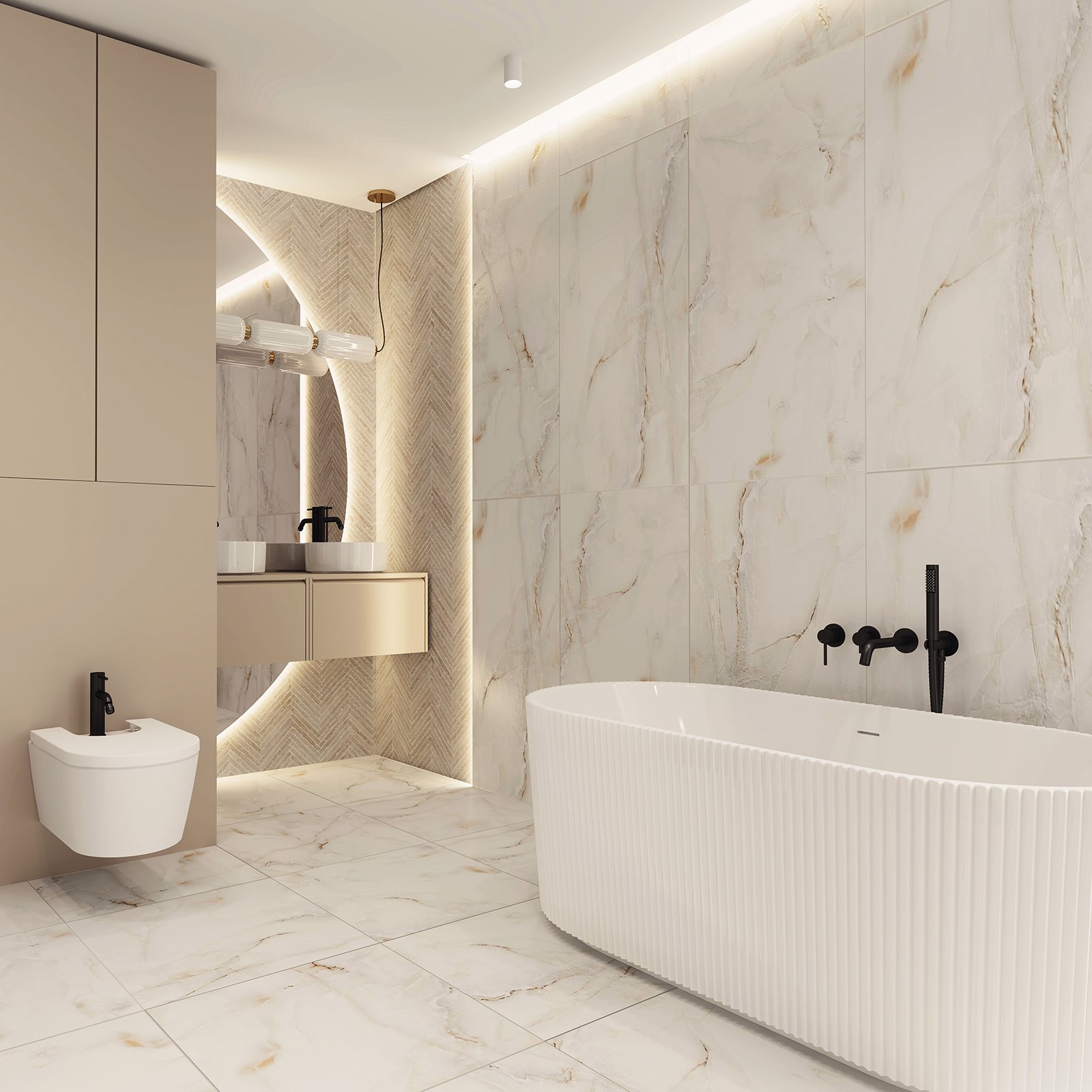 Gres szkliwiony LOGAN biały carving 120x120. Gatunek pierwszy. Do stosowania na podłogach i ścianach, wewnątrz i na zewnątrz budynków, z wyłączeniem miejsc o bardzo dużym natężeniu ruchu.