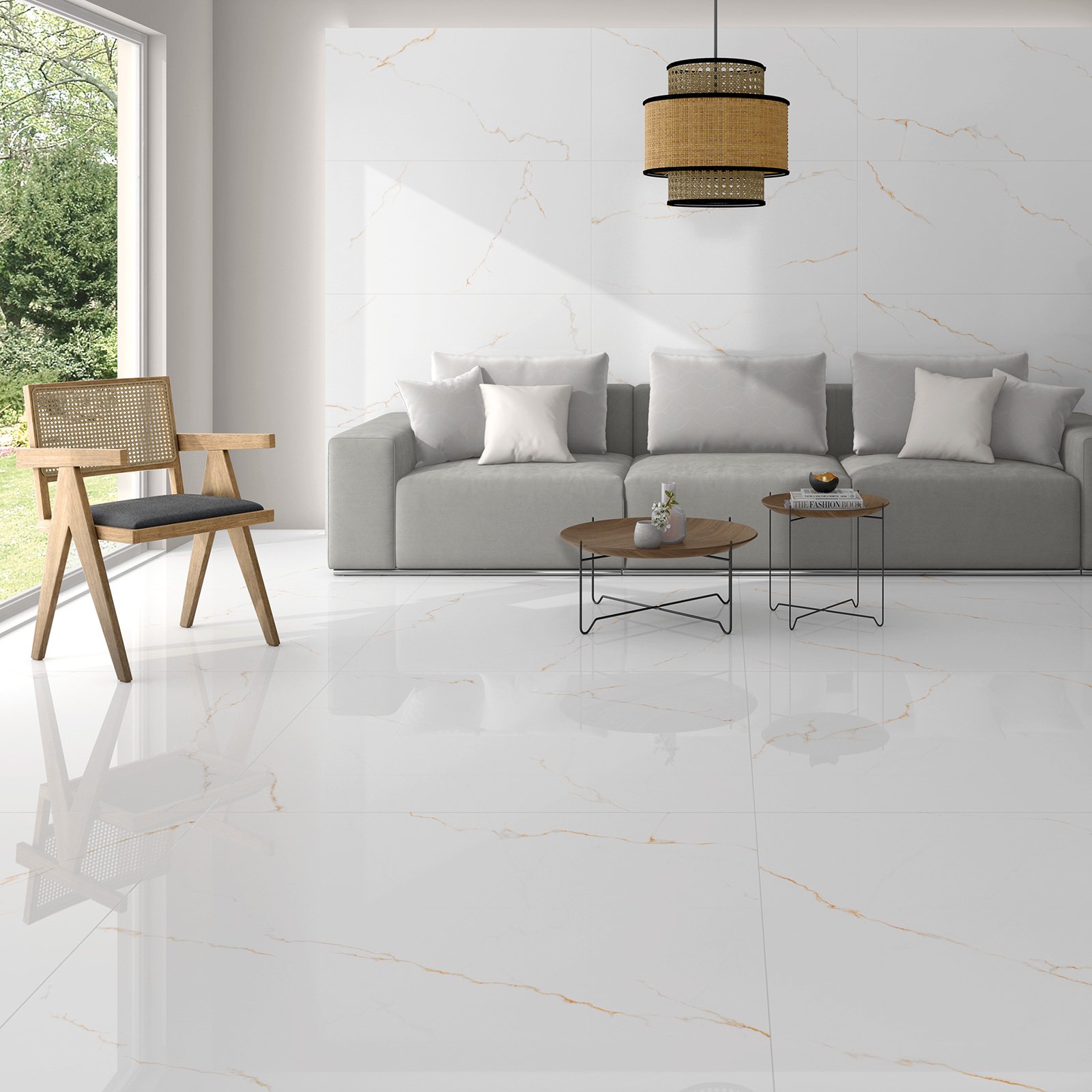 Gres szkliwiony hiszpański MARBLE biały poler 119x119. Gatunek pierwszy. Do stosowania na podłogach i ścianach, wewnątrz i na zewnątrz budynków, z wyłączeniem miejsc o bardzo dużym natężeniu ruchu.
