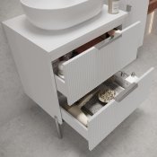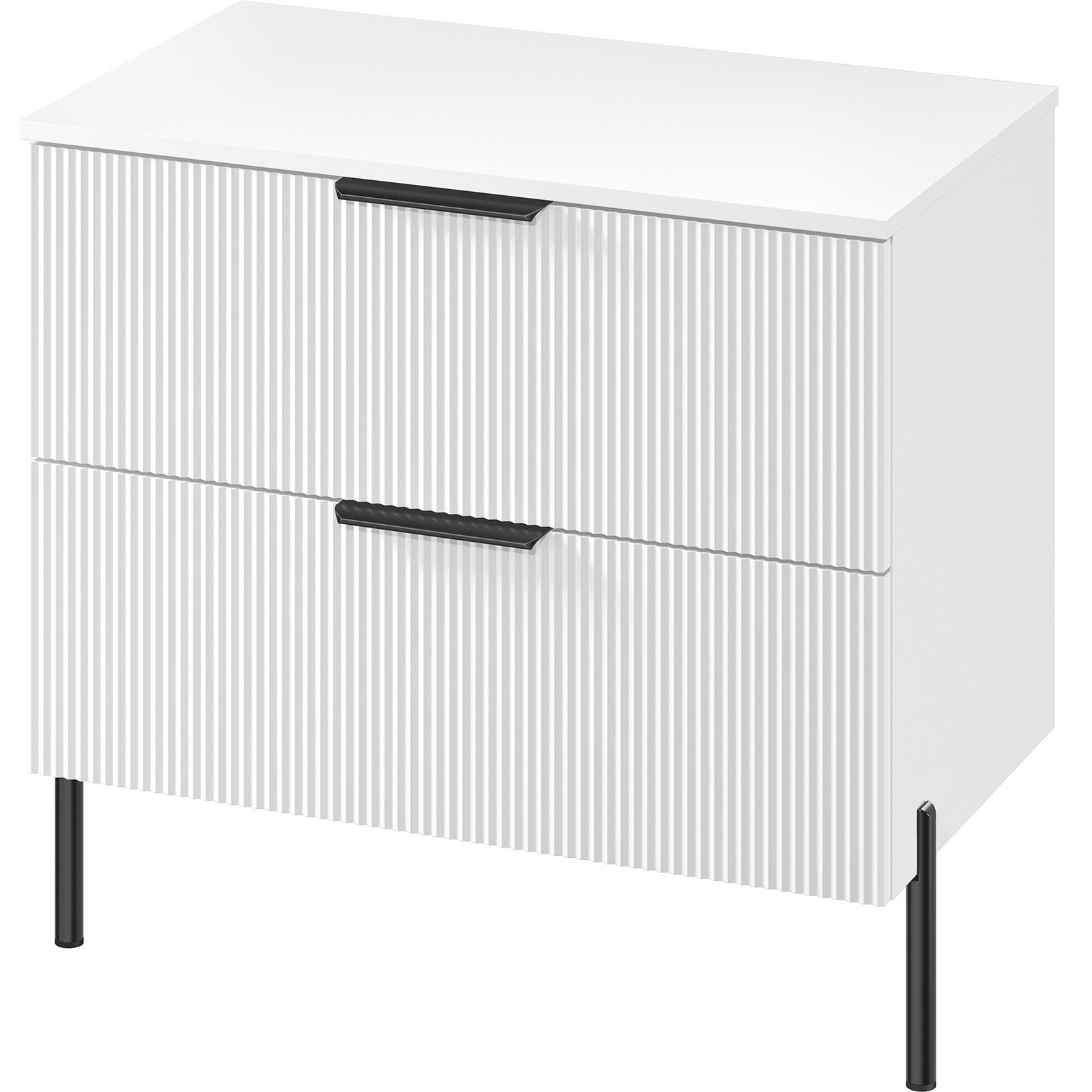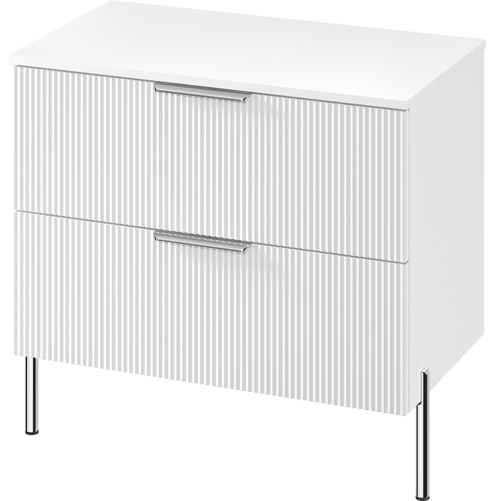 Charakter kolekcji podkreślają subtelnie ryflowane fronty, dodające meblom designerskiego sznytu przy zachowaniu ich czystej formy.