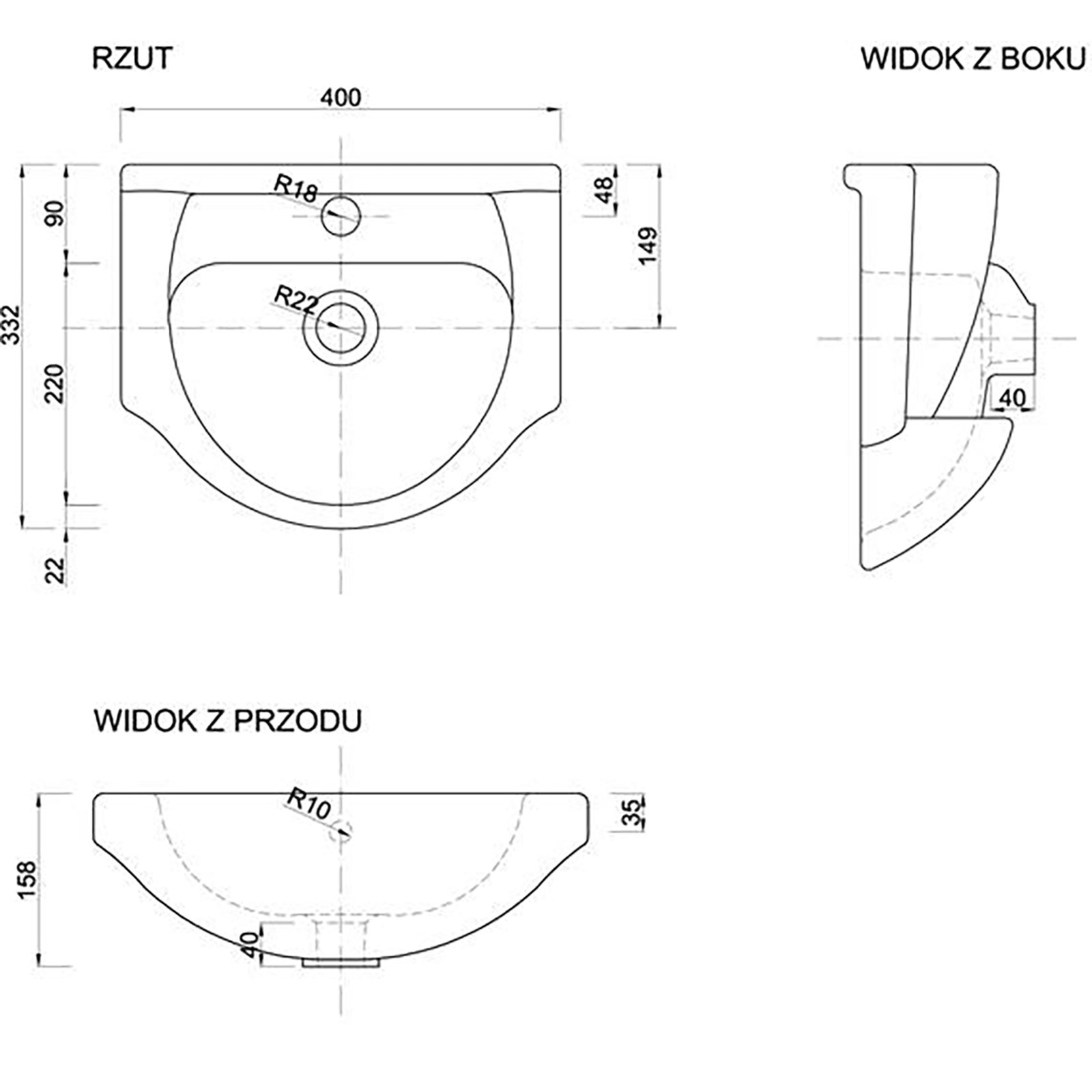 - Dłuższy bok: 40 cm