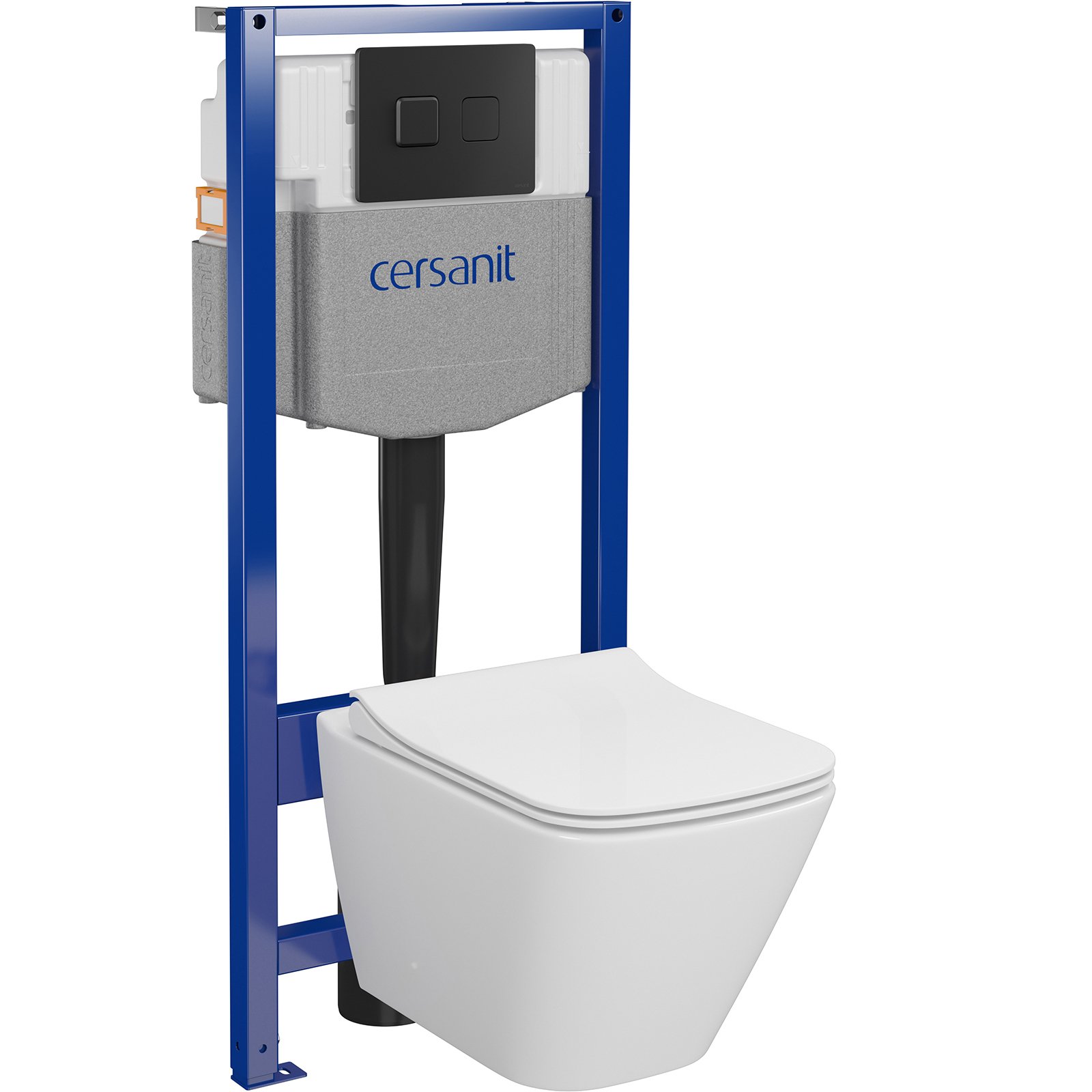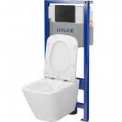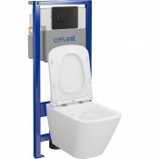 Zestaw podtynkowy SYSTEM 5, pneumatyczny, miska bezkołnierzowa City Square, deska wolnoopadająca, łatwe wypinanie, przycisk czarny mat.