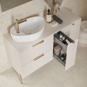 Innowacyjną cechą kolekcji jest możliwość wyboru systemu otwierania: klasycznego soft close z uchwytem lub nowoczesnego push to open.