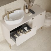 BONICA oferuje liczne rozwiązania, które pozwalają maksymalnie wykorzystać dostępną przestrzeń. W kolekcji znajdują się szafki podumywalkowe zarówno z dwiema szufladami, jak i z jedną – o wyjątkowym, nowoczesnym designie. Praktyczne szafki typu cargo oraz modele z koszem na pranie pomagają zorganizować każdy centymetr łazienki, zapewniając wygodę codziennego użytkowania. Kolekcję uzupełniają słupki, a także szafki wiszące i lustrzane, dzięki czemu każdy może stworzyć zestaw idealnie dopasowany do swoich potrzeb.