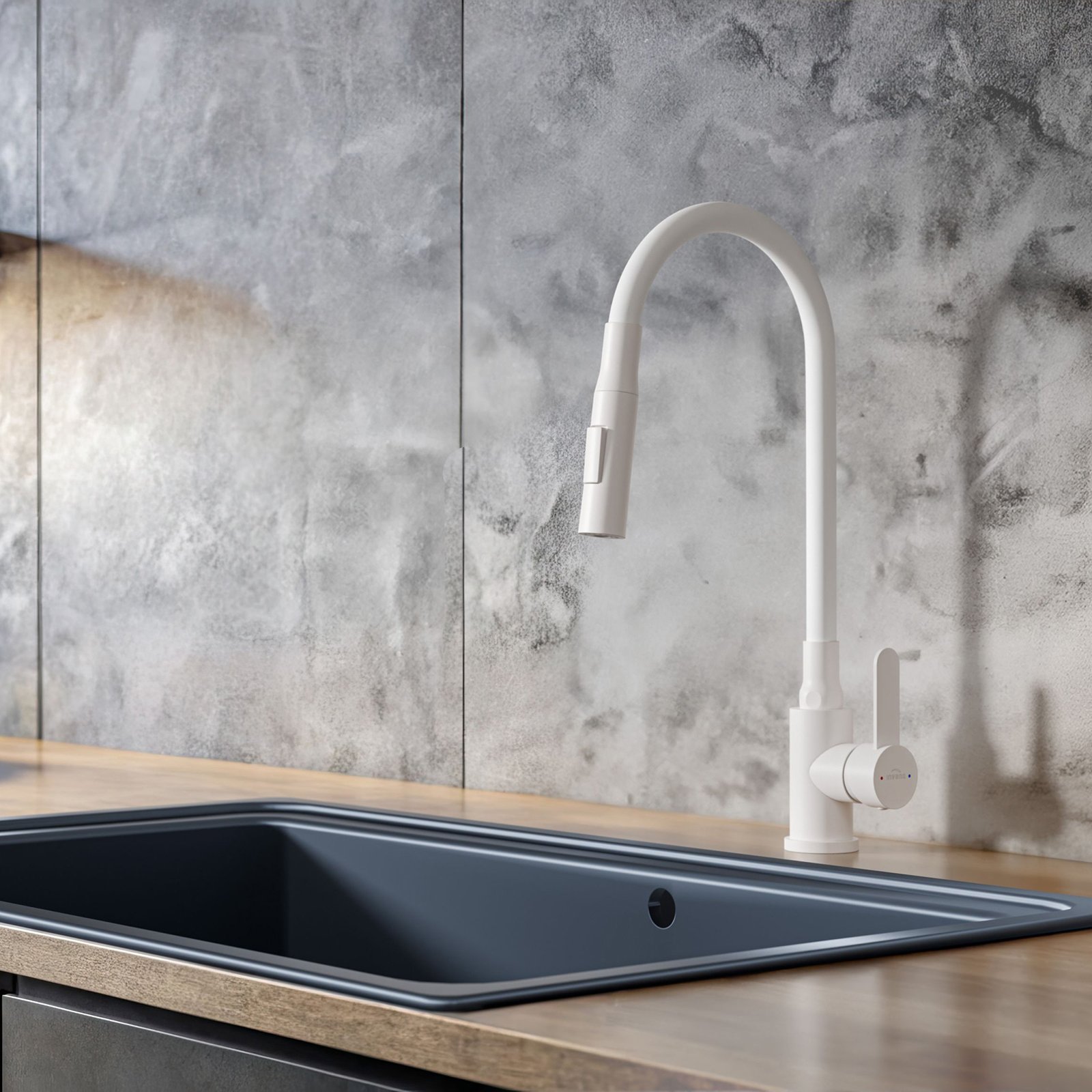 Bateria zlewozmywakowa DALIS w kolorze białym to idealne połączenie nowoczesnej elegancji i praktyczności, które wzbogaci każdą kuchnię. Jej czysta biel sprawia, że doskonale komponuje się z szeroką gamą aranżacji, w tym stylami skandynawskimi, minimalistycznymi oraz klasycznymi. Dzięki swojej prostocie i funkcjonalności, bateria ta stanie się niezbędnym elementem wyposażenia Twojej kuchni. Bateria DALIS posiada ruchomą wylewkę, co daje Ci pełną swobodę regulacji kierunku wody. Dzięki elastyczności wylewki możesz precyzyjnie dopasować strumień do swoich potrzeb, co znacznie ułatwia codzienne czynności, takie jak mycie naczyń, płukanie warzyw czy czyszczenie zlewozmywaka. Dwufunkcyjny przełącznik strumienia umożliwia wygodny wybór między dwoma trybami przepływu wody: Strumień normalny – idealny do napełniania garnków, płukania naczyń czy codziennych czynności. Spray – szeroki i mocny strumień, który doskonale sprawdza się przy myciu owoców, warzyw lub usuwaniu trudniejszych zabrudzeń. Technologia oszczędzania wody i trwałość, zapewnione przez mieszacz ceramiczny 35 mm, który zapewnia płynne i precyzyjne ustawienie temperatury oraz ciśnienia wody, co gwarantuje niezawodność i komfort użytkowania. Dwufunkcyjny perlator oszczędzający wodę napowietrza wodę, zmniejszając jej zużycie, co jest korzystne zarówno dla środowiska, jak i Twojego portfela. Odporność na zarysowania i wysoką temperaturę – bateria wykonana jest z materiałów o wysokiej trwałości, co zapewnia jej długowieczność i estetyczny wygląd przez lata. Dzięki systemowi szybkiego montażu, bateria DALIS jest niezwykle łatwa do zainstalowania. W zestawie znajdziesz wężyki przyłączeniowe 3/8”, 45 cm (2 szt.), które gwarantują szeroką kompatybilność z większością standardowych instalacji. Montaż jest szybki, bezproblemowy, a efekt – doskonały.