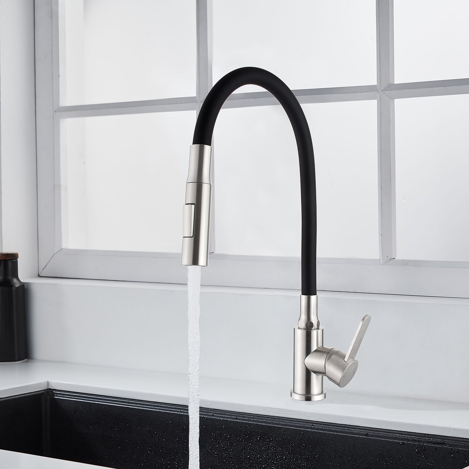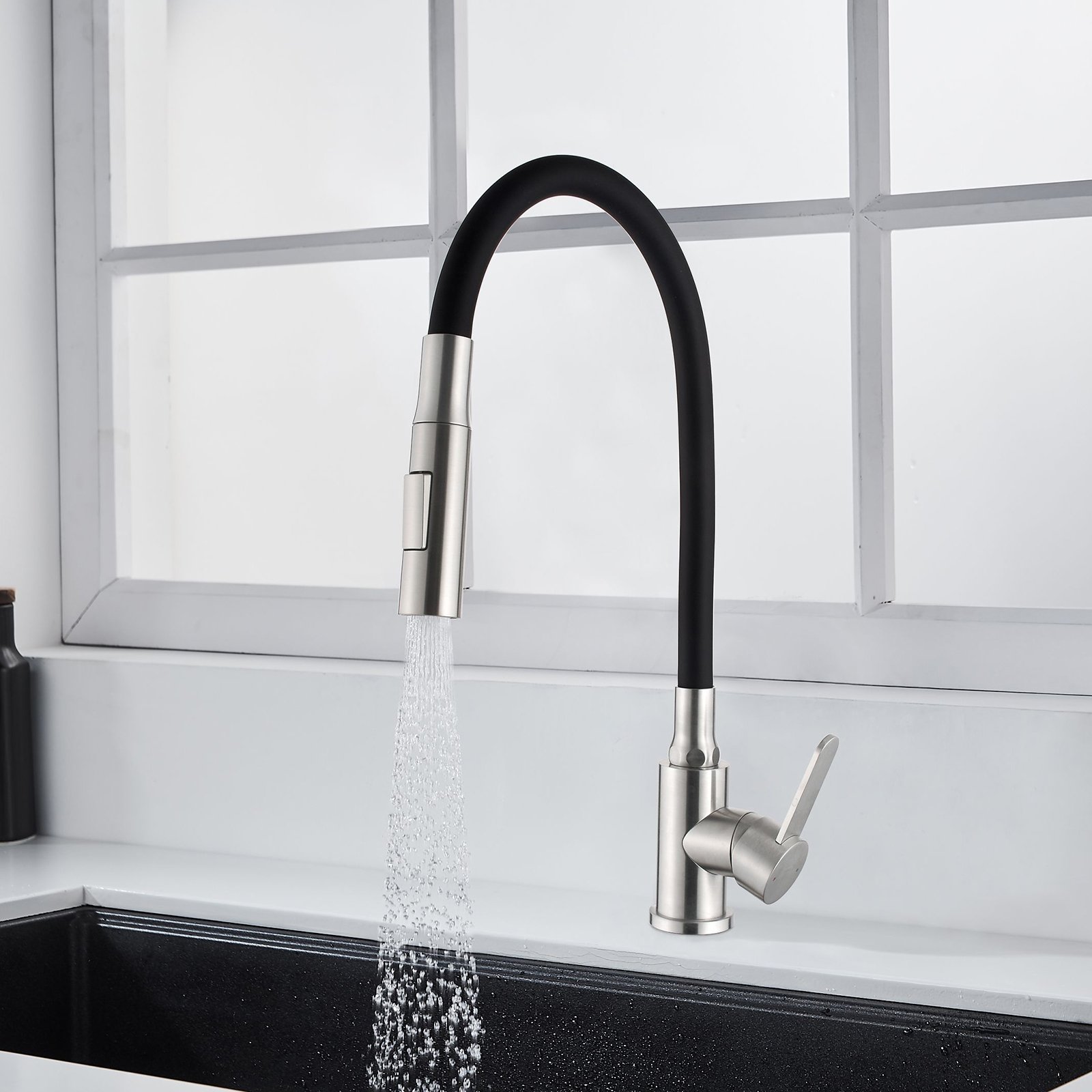 Bateria kuchenna stojąca DALIS z 2-funkcyjną elastyczną wylewką inox/czarna