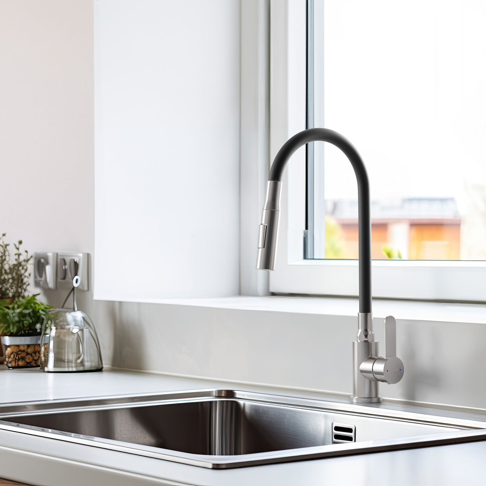 Bateria zlewozmywakowa DALIS w kolorze inox/czarnym to elegancka propozycja, która wprowadzi do Twojej kuchni nowoczesny styl i wysoką funkcjonalność. Połączenie klasycznego inoxu z matową czernią sprawia, że bateria stanowi doskonały element dekoracyjny, który pasuje do industrialnych, minimalistycznych oraz nowoczesnych wnętrz. Jej innowacyjne funkcje gwarantują wygodę codziennego użytkowania i oszczędność wody. Bateria DALIS wyposażona jest w ruchomą, elastyczną wylewkę, która umożliwia pełną kontrolę nad strumieniem wody. Dzięki temu możesz łatwo dostosować jej kąt do swoich potrzeb, co sprawia, że codzienne czynności takie jak mycie naczyń, płukanie warzyw czy czyszczenie zlewozmywaka stają się znacznie łatwiejsze. Dwufunkcyjny przełącznik strumienia pozwala na wybór między dwoma trybami przepływu wody, a zaawansowana technologia zapewnia trwałość i oszczędność wody. Bateria DALIS wyposażona jest w mieszacz ceramiczny 35 mm, który zapewnia precyzyjną regulację temperatury oraz ciśnienia wody, co przekłada się na wygodę użytkowania i długowieczność baterii. Dwufunkcyjny perlator oszczędzający wodę napowietrza strumień, zmniejszając zużycie wody nawet o 50%, co przyczynia się do ochrony środowiska i obniżenia kosztów. Jej solidna konstrukcja i materiały najwyższej jakości zapewniają odporność na uszkodzenia i codzienne użytkowanie. Bateria DALIS posiada system szybkiego montażu, który pozwala na łatwą i szybką instalację. W zestawie znajdują się wężyki przyłączeniowe 3/8”, 45 cm (2 szt.), co sprawia, że bateria jest kompatybilna z większością instalacji wodociągowych. Inox i czerń to ponadczasowe połączenie, które pasuje do szerokiej gamy kuchennych aranżacji. Bateria DALIS świetnie komponuje się z czarnymi, stalowymi oraz granitowymi zlewozmywakami, tworząc spójną, estetyczną przestrzeń. Jej nowoczesny wygląd i wysoka funkcjonalność to gwarancja satysfakcji przez długie lata.