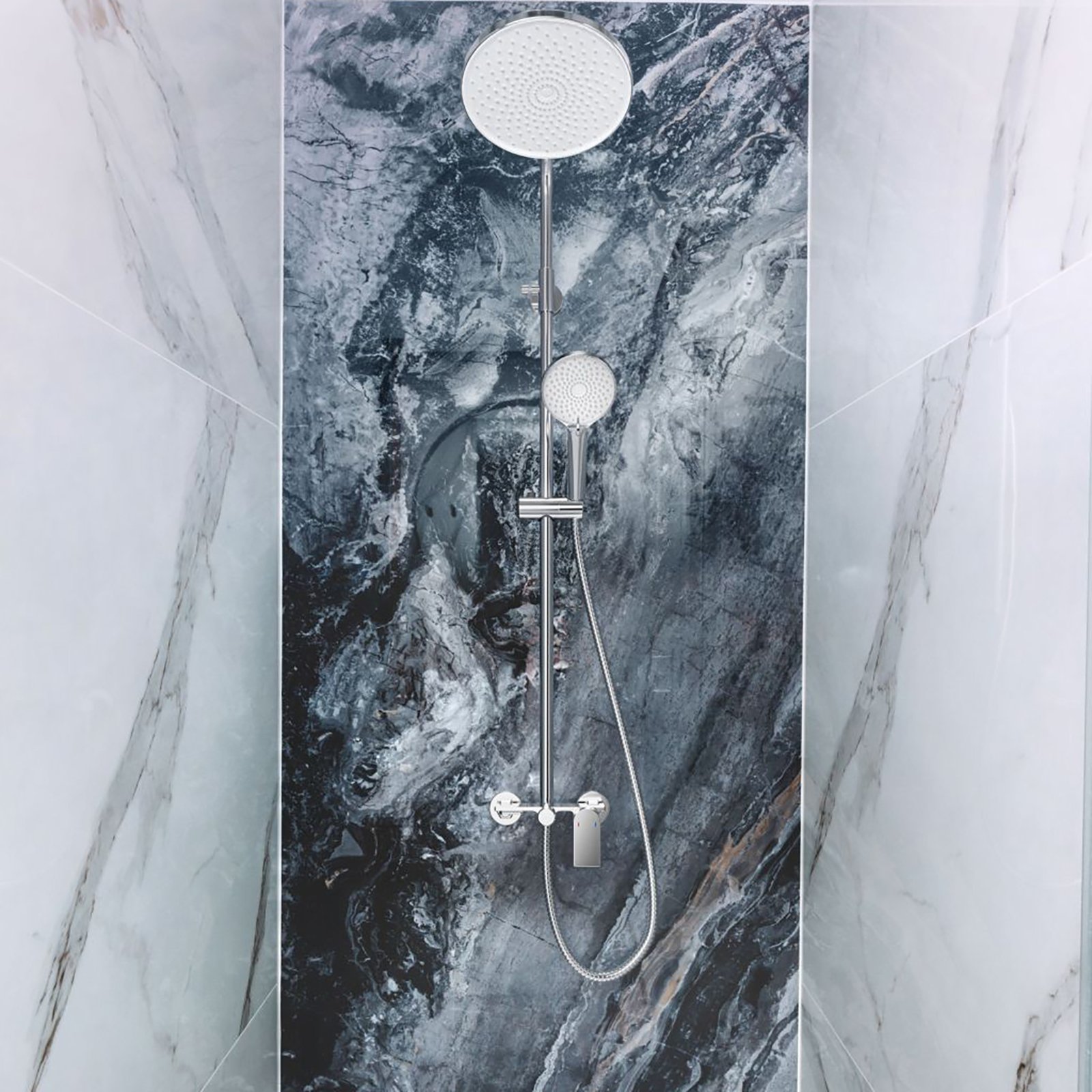 Deszczownia RIKIA w eleganckim chromowanym wykończeniu to połączenie ponadczasowego designu i nowoczesnej funkcjonalności, stworzone z myślą o łazienkach, w których liczy się komfort oraz estetyka. Regulowana kolumna natryskowa pozwala idealnie dopasować zestaw do wzrostu i preferencji domowników, a duża i okrągła deszczownica otuli strumieniem miękkiej wody, zapewniając relaks niczym w domowym spa.