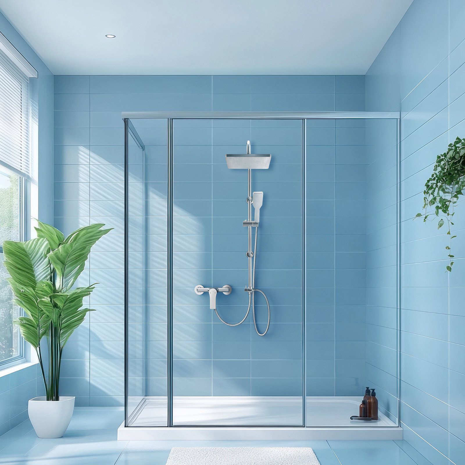 AMFISA w kolorze chrom to połączenie elegancji codziennego komfortu z nowoczesnością. Ruchomy natrysk górny wykonany z tworzywa ABS i wymiarach 25 x 17 cm, gwarantuje przyjemne rozproszenie strumienia. Dzięki zastosowaniu technologii Anti-Calc oraz funkcji samooczyszczania, dysze zawsze pozostają drożne i czyste. Zestaw uzupełnia ręczna 1-funkcyjna (strumień normalny) słuchawka, o wymiarach 6,3 x 23 cm.