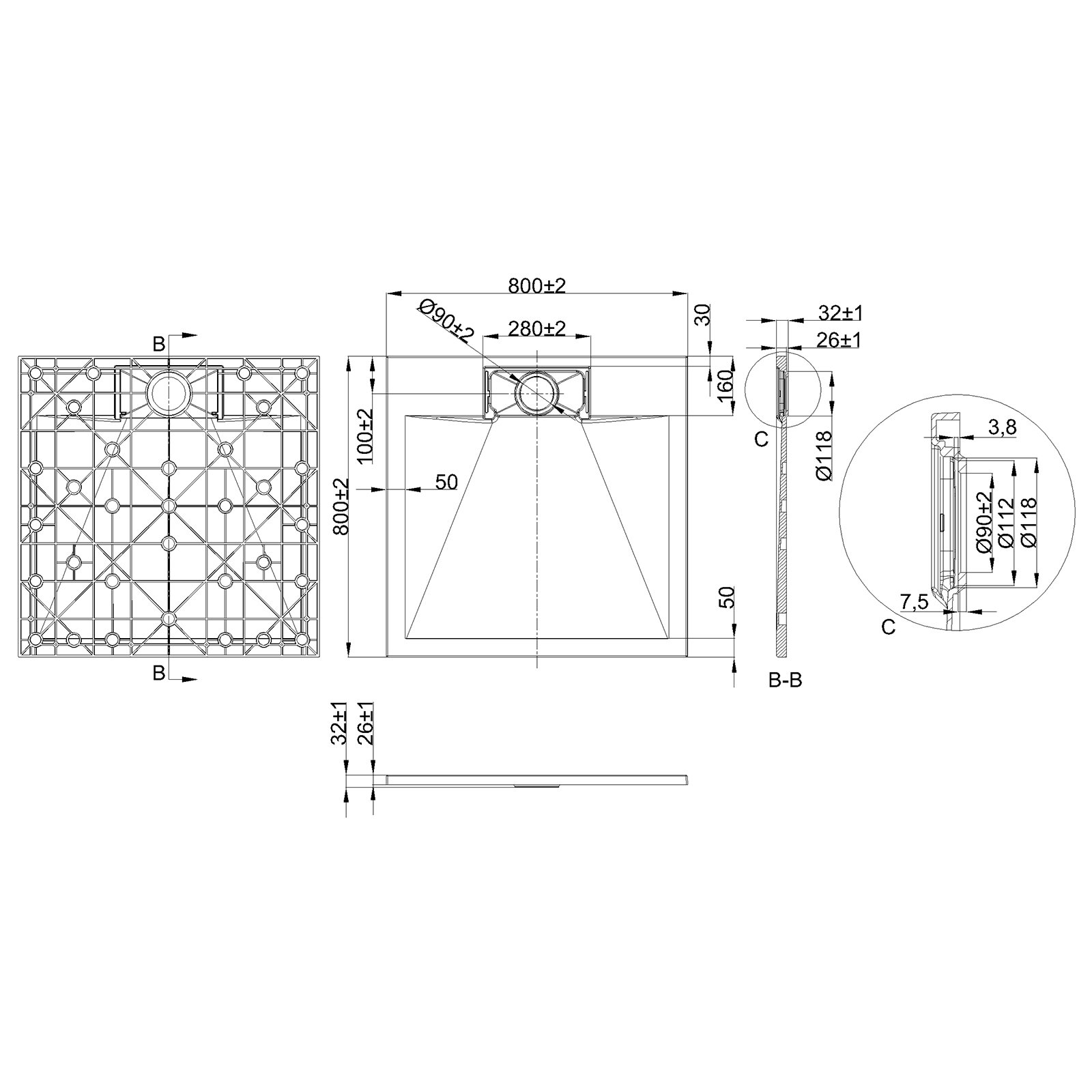 Brodzik kwadratowy ALVERO 80x2,6 biały