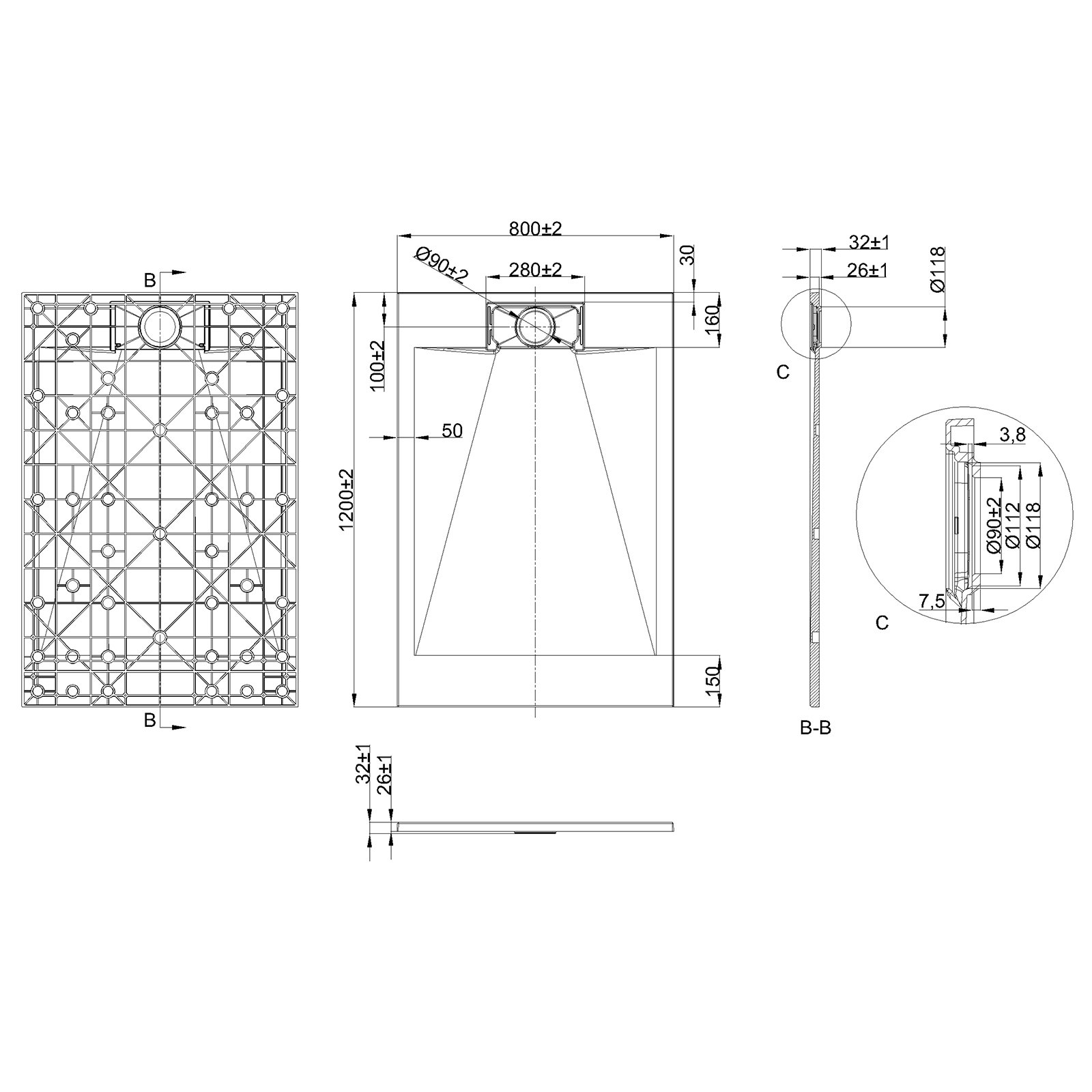 Brodzik kwadratowy ALVERO 120x80x2,6 czarny