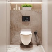 Zestaw podtynkowy WC Astri to wybór dla osób ceniących nowoczesny styl i odważne rozwiązania. Miska wisząca w kształcie okrągłym została wyposażona w deskę wolnoopadającą slim hard i system łatwego wypinania, co zapewnia wygodę i higienę. System QFS działa niemal bezszelestnie, a podwójne spłukiwanie 3/6 l ogranicza zużycie wody. Stelaż z nośnością do 400 kg, regulacją wysokości i szczelnym, jednoczęściowym zbiornikiem gwarantuje stabilność i bezpieczeństwo na lata. Czarny przycisk 601 to designerski detal, który świetnie komponuje się z nowoczesnymi, loftowymi aranżacjami łazienek.