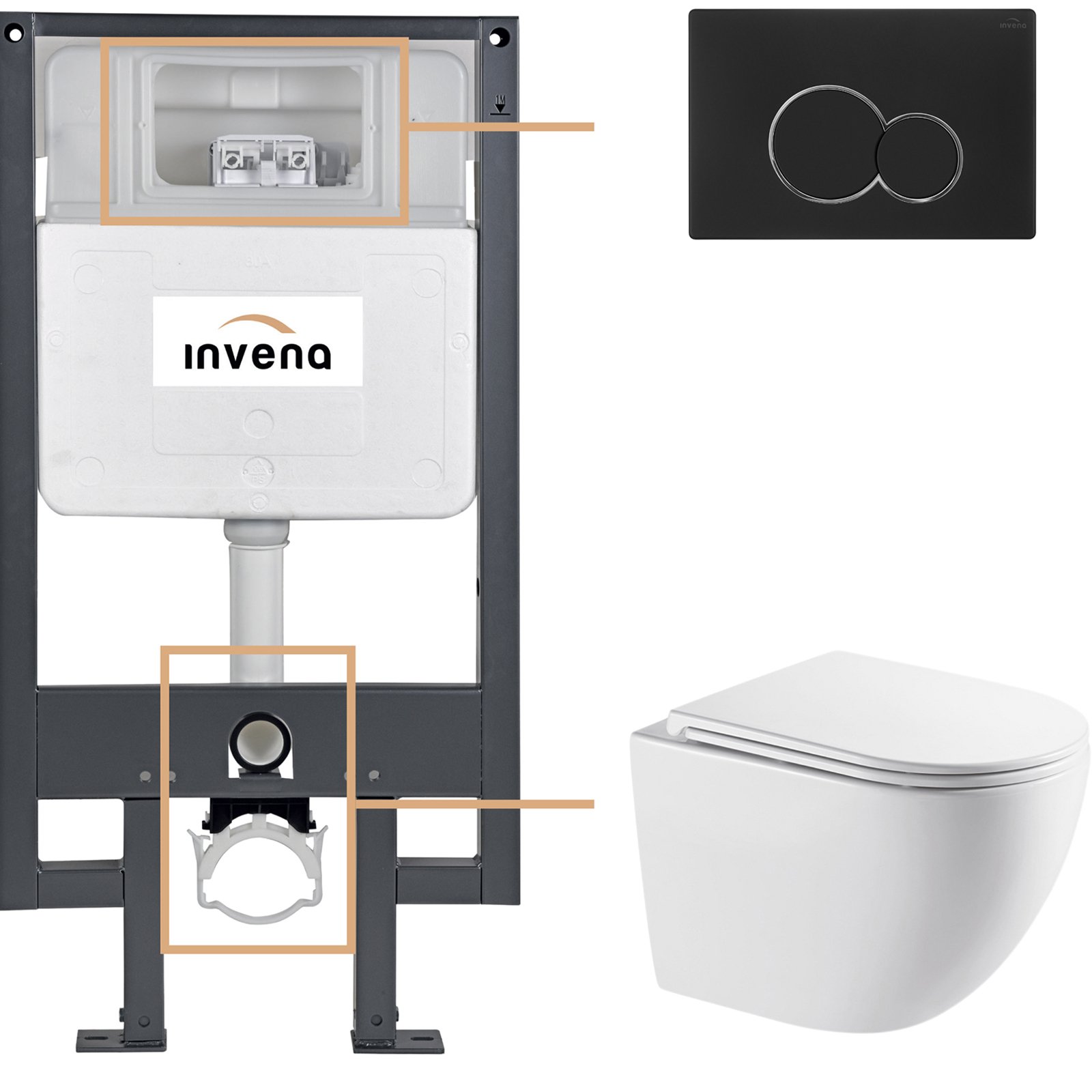 INVENA Zestaw podtynkowy 50 mechaniczny, miska ASTRI, deska, przycisk 601 czarny CK-87-014