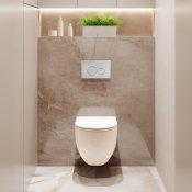 Zestaw podtynkowy WC Astri łączy praktyczne rozwiązania techniczne i elegancką stylistykę. Okrągła miska wisząca z deską wolnoopadającą slim hard i systemem łatwego wypinania zapewnia wygodę i łatwość czyszczenia. Cichy system QFS i spłukiwanie 3/6 l gwarantują komfort i ekologię. Stelaż podtynkowy o wytrzymałości do 400 kg posiada regulowane nogi i szczelny zbiornik, co zapewnia stabilność i niezawodność. Chromowany przycisk 604 to detal, który dodaje elegancji i połysku całej aranżacji.