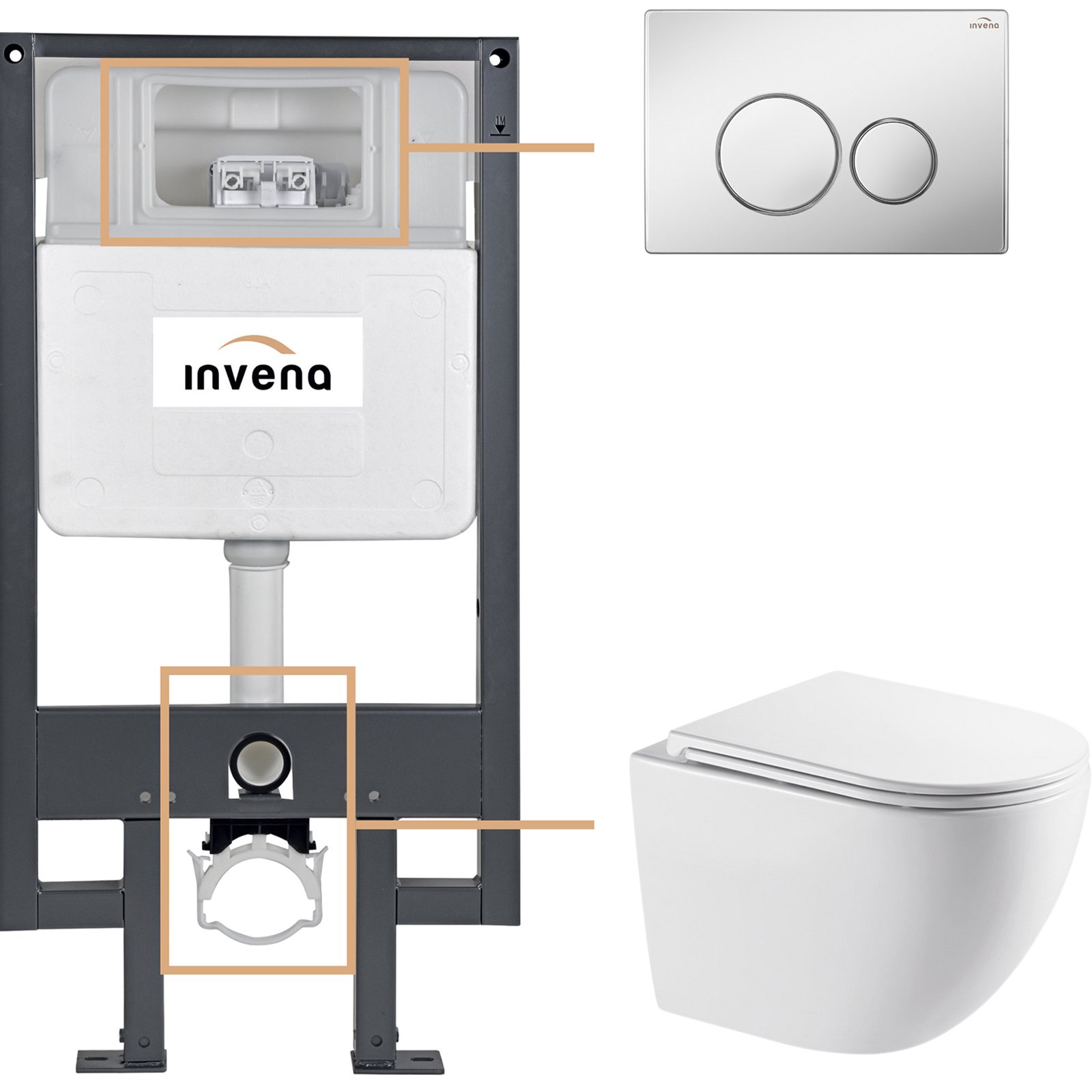 INVENA Zestaw podtynkowy 50 mechaniczny, miska ASTRI, deska, przycisk 604 chrom CK-87-041