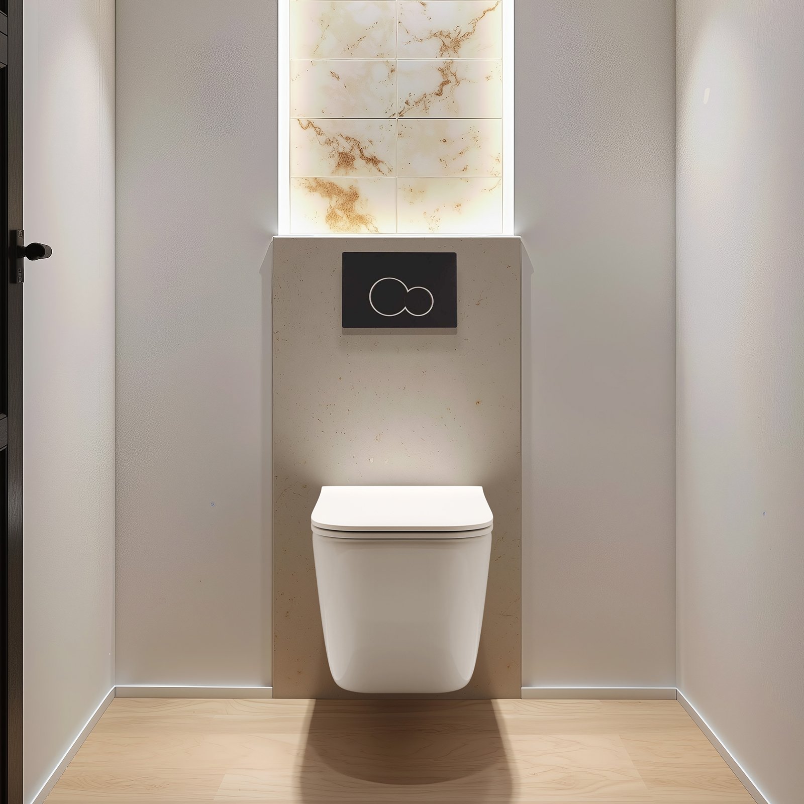 Czarna wersja zestawu PAROS z przyciskiem 601 doskonale wpisuje się w nowoczesne, wyraziste aranżacje. Bezkołnierzowa miska (rimless) gwarantuje higienę oraz łatwe czyszczenie bez trudno dostępnych zakamarków. Deska slim wolnoopadająca i szybkie wypinanie podnoszą komfort użytkowania. Stelaż o wytrzymałości 400 kg i regulacji wysokości pozwala na intuicyjny montaż. Czarny przycisk 601 dodaje całości elegancji.
