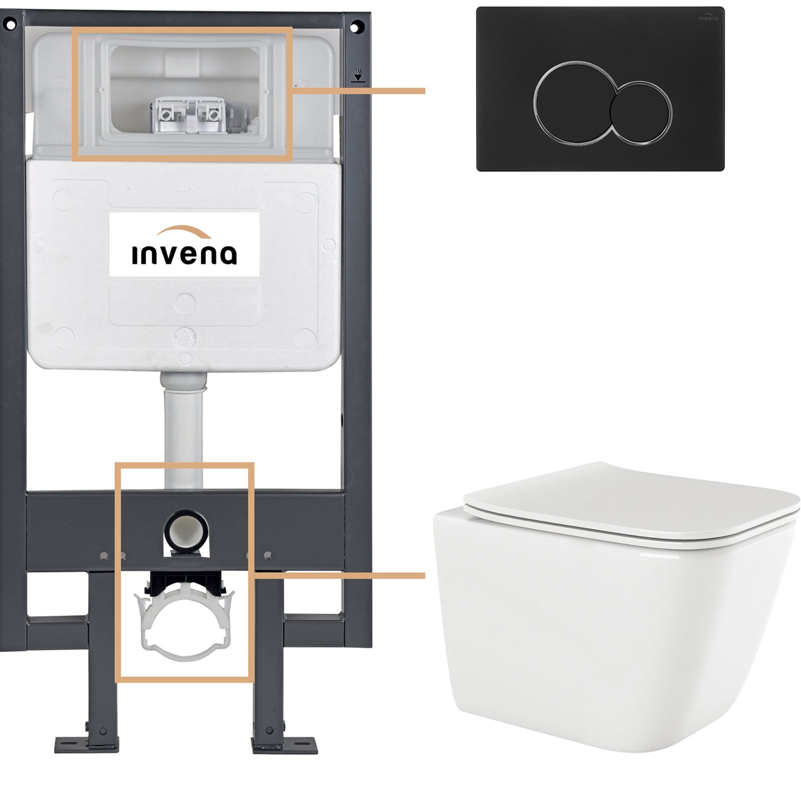 INVENA Zestaw podtynkowy 50 mechaniczny, miska PAROS, deska, przycisk 601 czarny CK-90-014