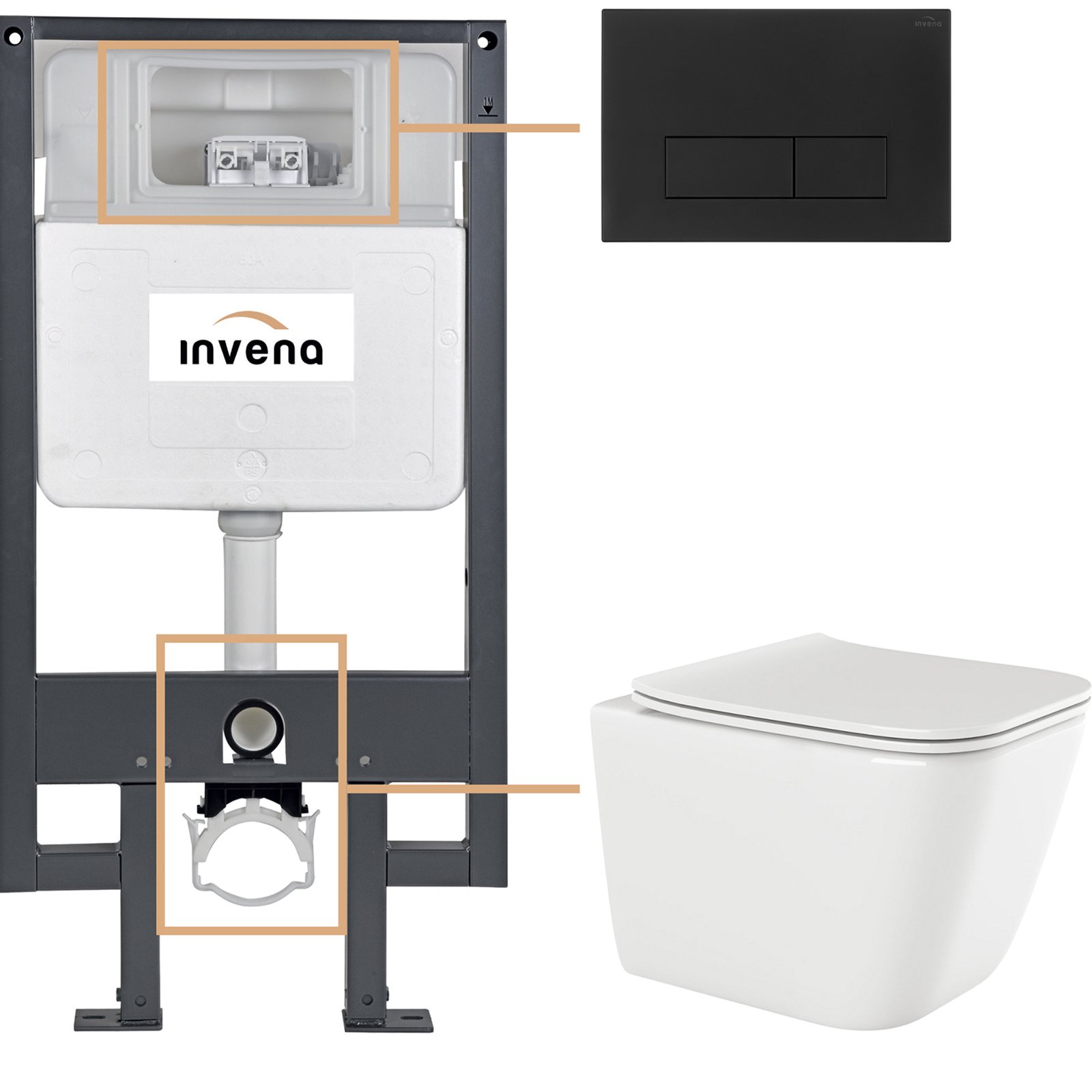 INVENA Zestaw podtynkowy 50 mechaniczny, miska PAROS, deska, przycisk 603 czarny CK-90-034