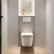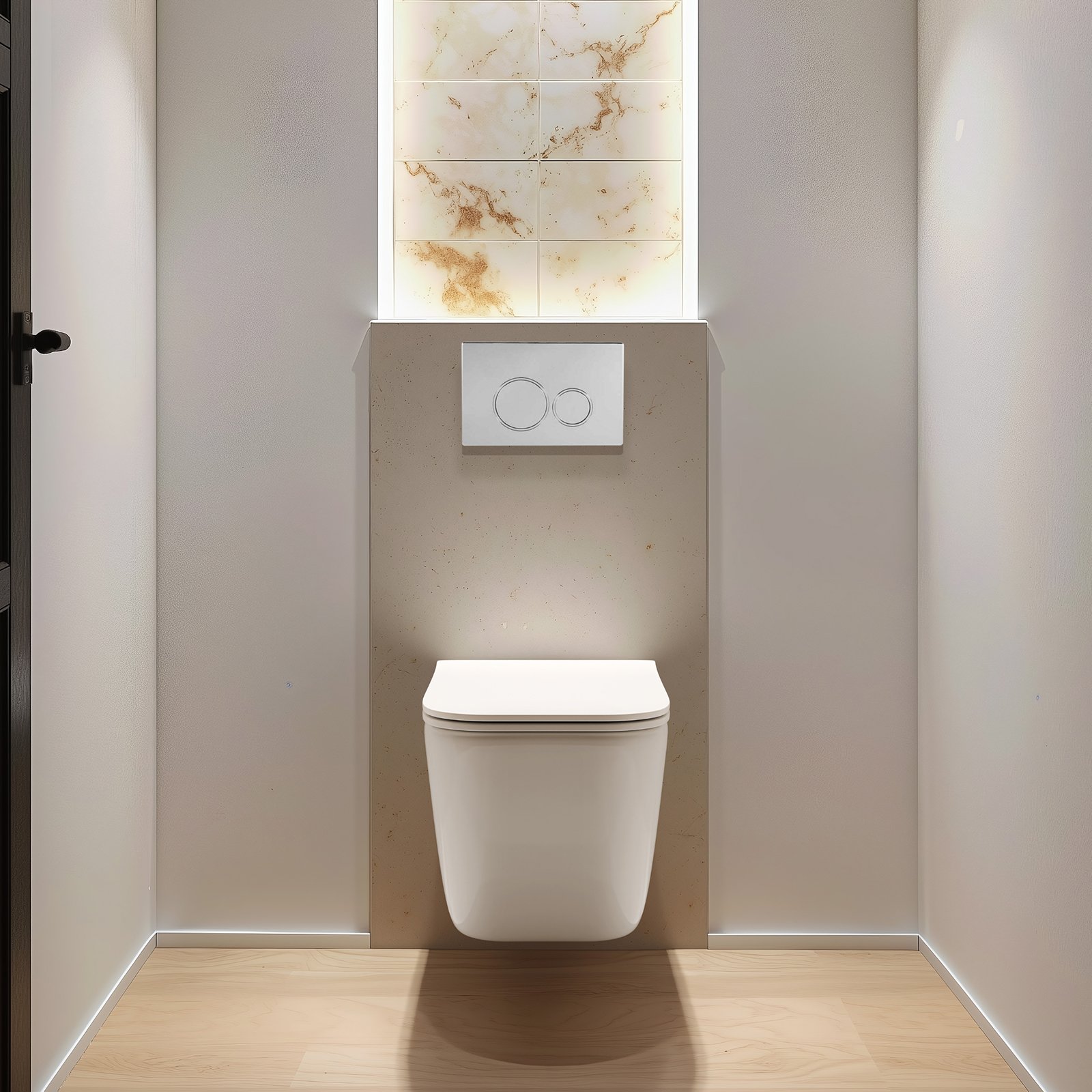 Wersja z przyciskiem 604 w chromie to idealne połączenie praktyczności i eleganckiej formy. Bezkołnierzowa miska rimless gwarantuje higieniczne spłukiwanie i łatwe czyszczenie. Deska slim wolnoopadająca poprawia komfort, a stelaż z regulacją wysokości i spłukiwaniem 3/6 l zapewnia trwałość. Chromowany przycisk 604 dodaje nowoczesnej elegancji.