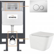 INVENA Zestaw podtynkowy 50 mechaniczny, miska PAROS, deska, przycisk 604 chrom CK-90-041