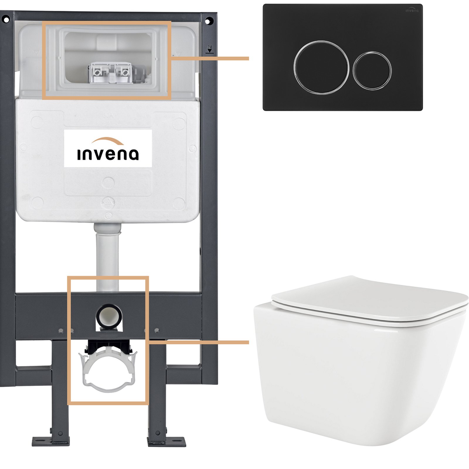 INVENA Zestaw podtynkowy 50 mechaniczny, miska PAROS, deska, przycisk 604 czarny CK-90-044