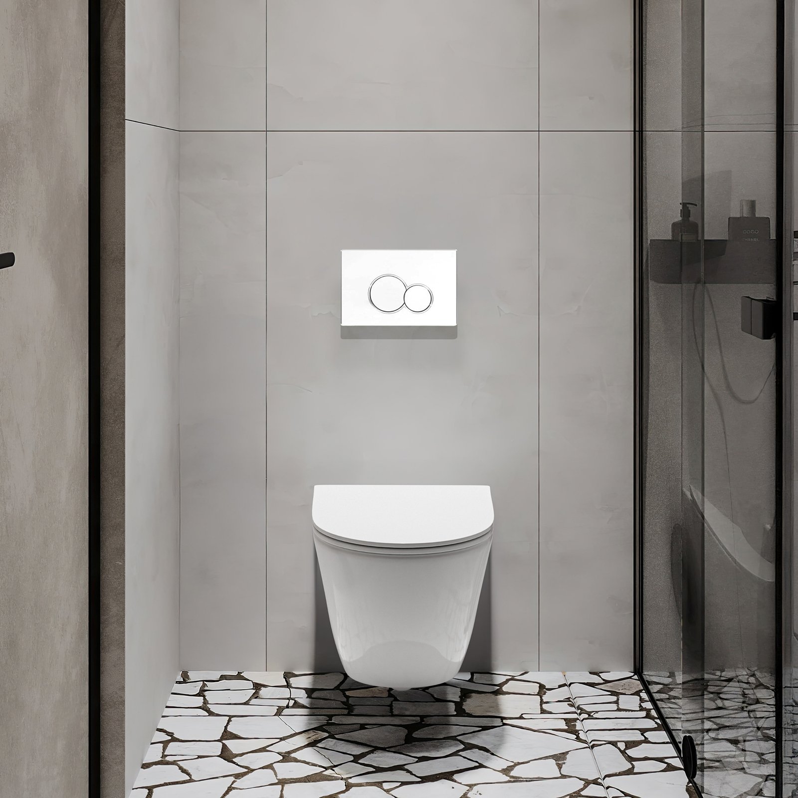 TINOS z przyciskiem 601 w bieli idealnie sprawdzi się w jasnych, minimalistycznych wnętrzach. Technologia rimless zwiększa higieniczność miski i ułatwia pielęgnację. Deska slim wolnoopadająca oraz szybkie wypinanie poprawiają komfort użytkowania. Stelaż zapewnia stabilność, regulację i oszczędne spłukiwanie 3/6 l. Biały przycisk 601 podkreśla czystą estetykę zestawu.