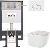 INVENA Zestaw podtynkowy 50 mechaniczny, miska TINOS, deska, przycisk 601 biały CK-91-012