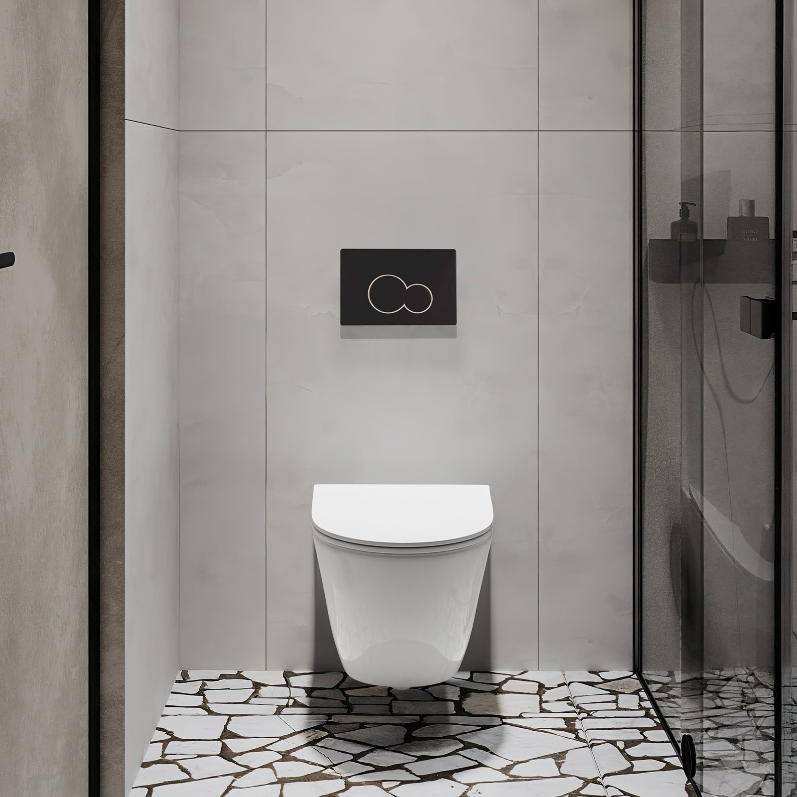 Zestaw TINOS w wersji z czarnym przyciskiem 601 nadaje wnętrzu elegancji i nowoczesności. Bezkołnierzowa miska rimless znacząco poprawia higienę i łatwość czyszczenia. Deska slim wolnoopadająca z szybkim wypinaniem stanowi wygodne rozwiązanie dla wymagających użytkowników. Stelaż 400 kg, regulacja montażu i cichy zawór napełniający zapewniają niezawodność. Czarny przycisk podkreśla stylowy charakter zestawu.