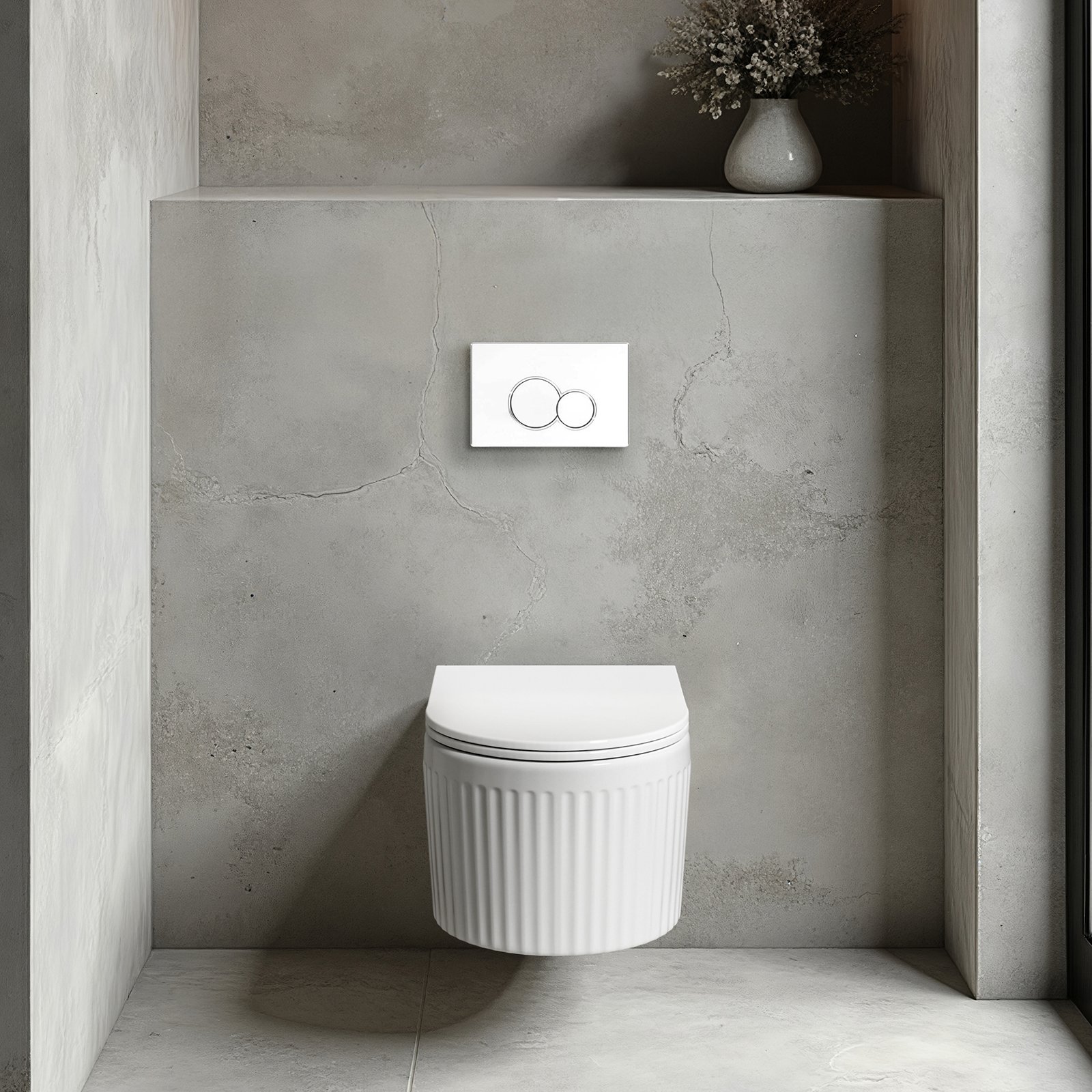 Zestaw Glamour z białym przyciskiem to idealne rozwiązanie dla miłośników czystych i harmonijnych aranżacji. Ryflowana miska o zaokrąglonym kształcie nie tylko wyróżnia się designem, ale również praktycznością – deska slim soft-close zapewnia cichą i płynną pracę, a system łatwego wypinania ułatwia utrzymanie higieny. Wytrzymały stelaż podtynkowy z jednoczęściowym zbiornikiem objętym gwarancją szczelności gwarantuje długą eksploatację i prosty montaż. Oszczędne spłukiwanie 3/6 l oraz cichy zawór napełniający czynią ten zestaw wyjątkowo ekonomicznym. Biały przycisk subtelnie dopełnia całość, podkreślając lekkość i nowoczesny charakter łazienki.