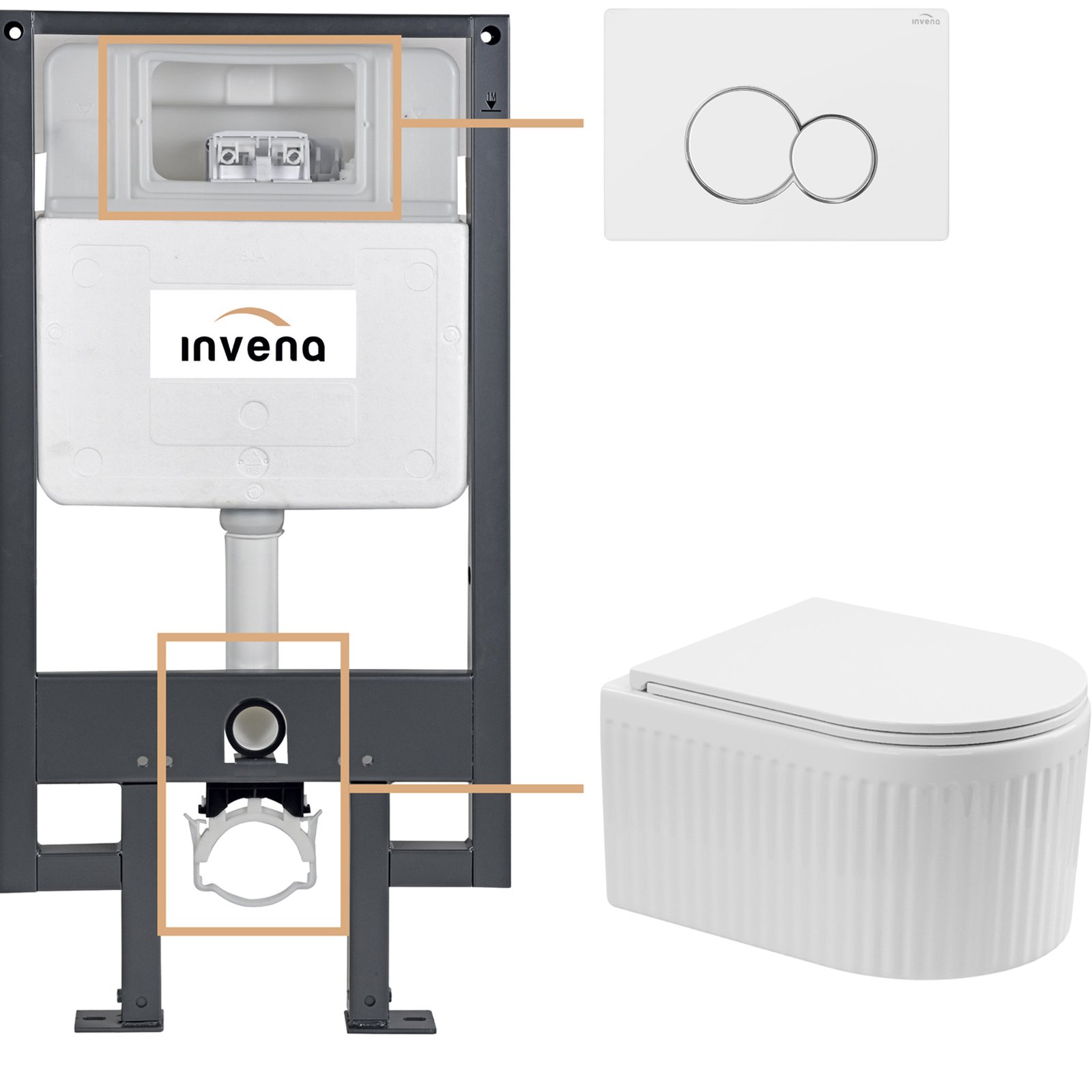 INVENA Zestaw podtynkowy 50 mechaniczny, miska GLAMOUR, deska, przycisk 601 biały CK-92-012