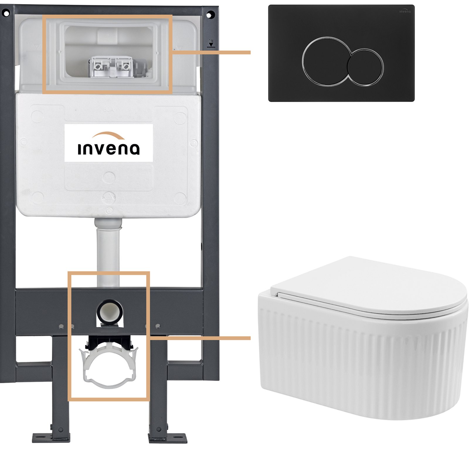 INVENA Zestaw podtynkowy 50 mechaniczny, miska GLAMOUR, deska, przycisk 601 czarny CK-92-014