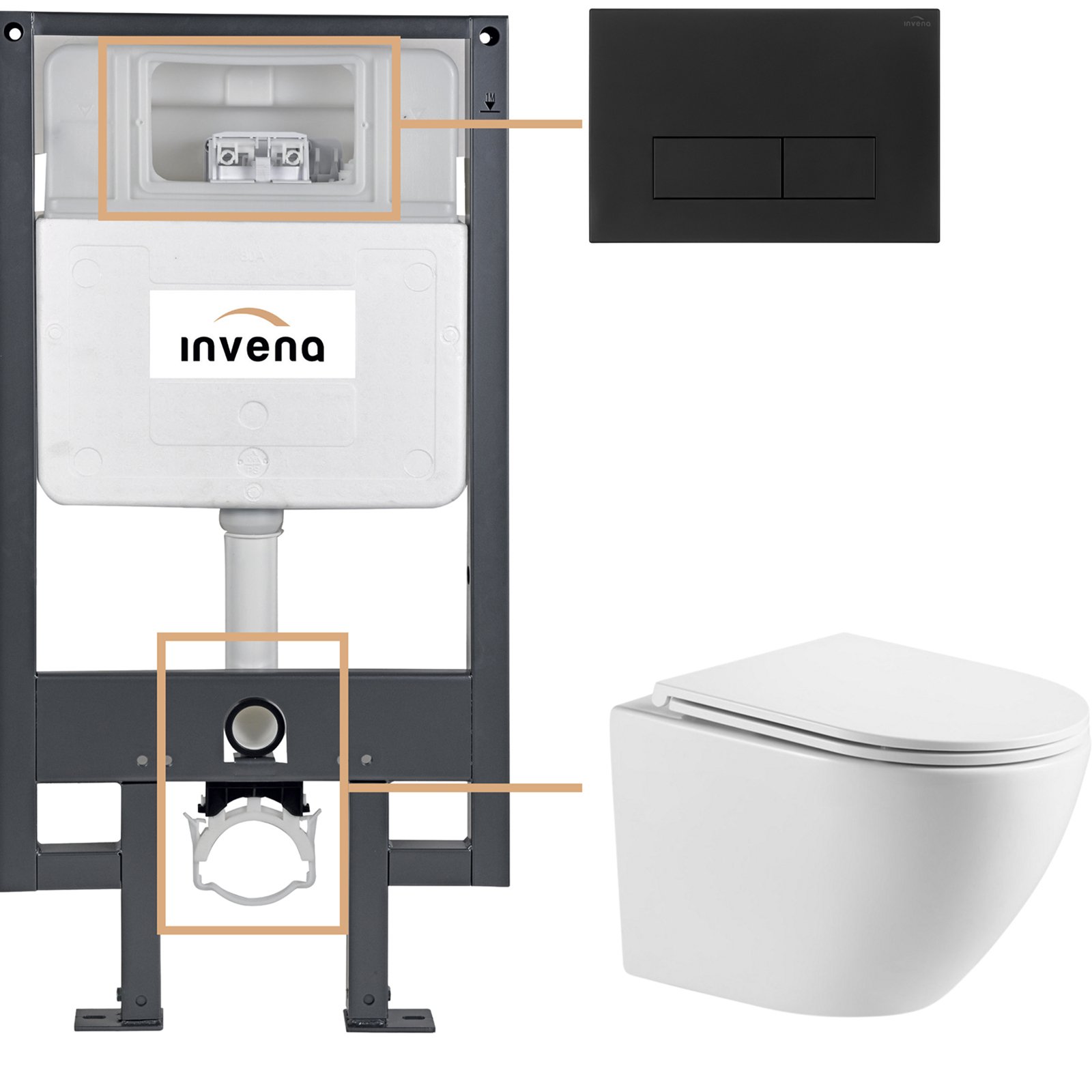 INVENA Zestaw podtynkowy 50 mechaniczny, miska LIMNOS, deska, przycisk 603 czarny CK-93-034
