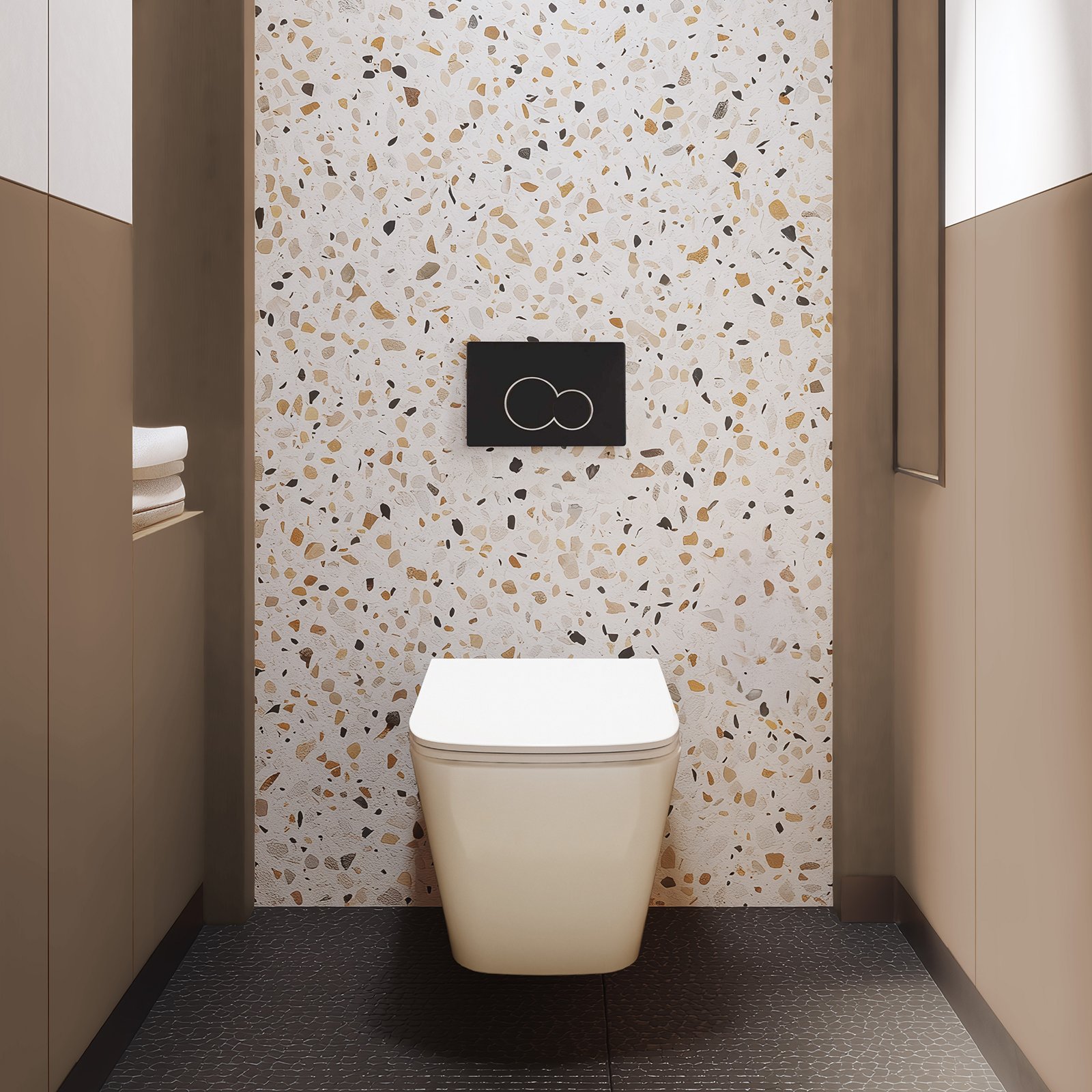 Zestaw podtynkowy WC Florina to idealne rozwiązanie dla osób ceniących nowoczesny, designerski charakter wnętrz. Kwadratowa miska wisząca z wolnoopadającą deską i systemem łatwego wypinania to praktyczne i eleganckie rozwiązanie, które podkreśla wyjątkowość łazienki. Cichy, wirowy system spłukiwania QFS działa niemal bezszelestnie, a oszczędne spłukiwanie 3/6 l wspiera ekologię i domowy budżet. Stelaż podtynkowy z wytrzymałością 400 kg, regulacją wysokości i gwarancją szczelności zbiornika zapewnia stabilność i niezawodność. Czarny przycisk 601 stanowi mocny akcent dekoracyjny, doskonały do wnętrz w stylu loftowym i industrialnym.